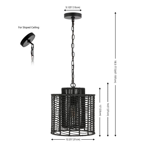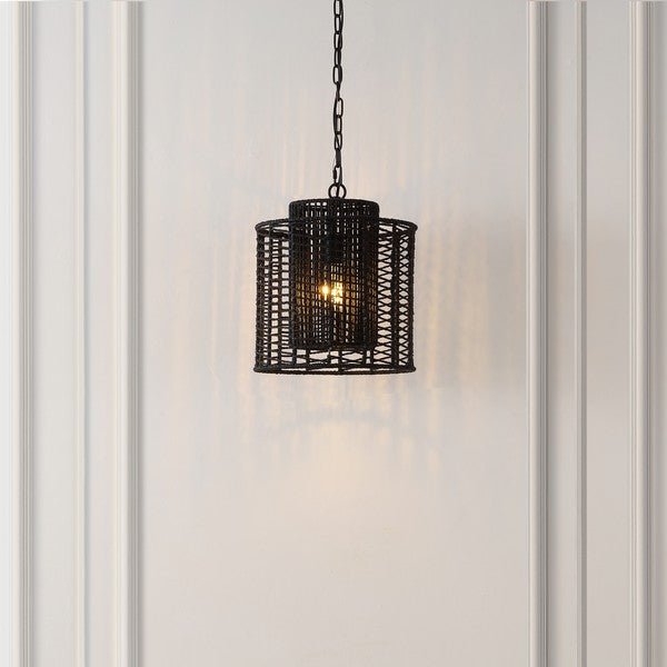 Illuminate any corner with the sleek and breezy style of our Ryoa extendable pendant. Two drum shades are artfully layered to deliver an airy and eye-catching pendant light. Adorned in a black finish, the pendant effortlessly blends with a variety of styles, serving as a relaxed and sophisticated focal point. Its intriguing woven pattern creates a dramatic play of light and shadow to light up your entryway, bedroom, living, or dining area with a dose of warmth and charm.