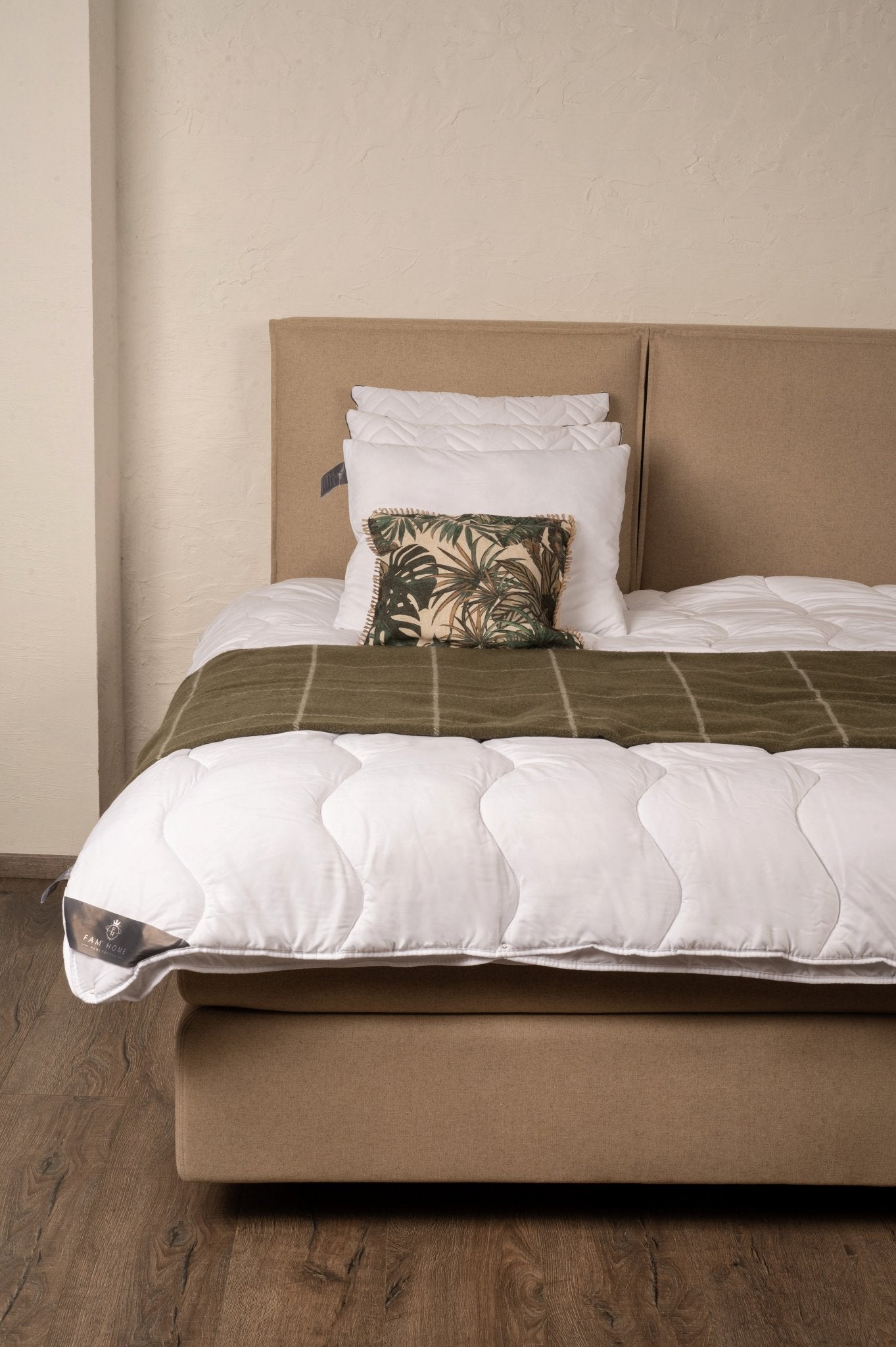 Elevate your sleep experience with this thoughtful blend of versatility, comfort, and environmental responsibility. Good quality bedding enhances sleep by providing comfort, proper support, and temperature regulation all year round, leading to improved rest and overall well-being. The 4-seasons comforter is characterized by durability and easy care, ensuring long-term value and consistent sleep quality.