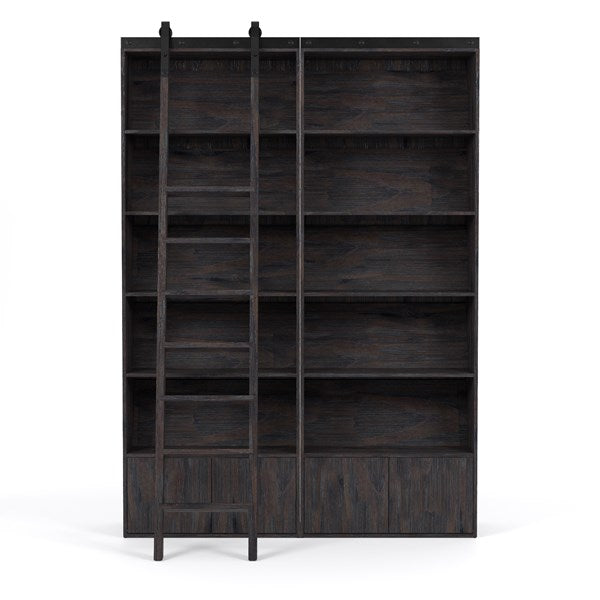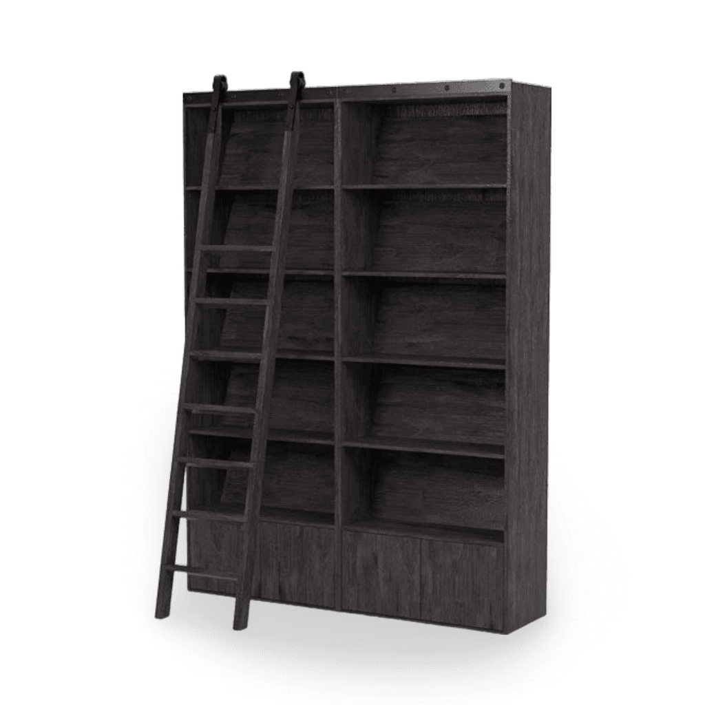 Ten roomy shelves are ready to store favorite books and treasures, with charcoal-finished solid pine suited for any space. Removable ledges slant at an angle on each shelf, for even-better display of art and coffee table-size books, plus an optional slide ladder (for decorative use only) to complete the look.