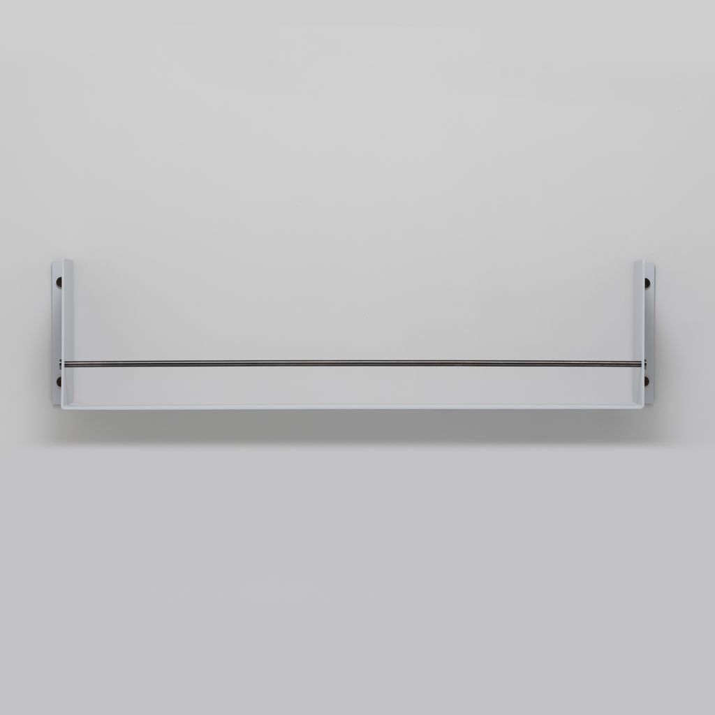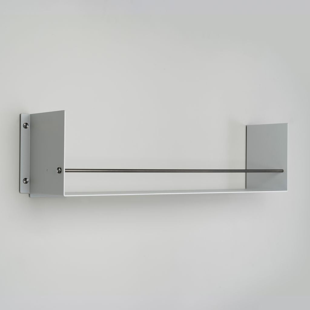 A shelf made from solid, powder coated metal with precisely engineered solid metal detailing. The heavy-duty shelf is made from laser cut 0.16Ó sheet aluminum, press bent and powder coated. To keep your belongings where they should be, it features a 0.5Ó hand polished solid metal guard rail, polished by hand and matching solid metal coin screws. Use to organize your kitchen essentials, or in a living space to showcase artworks, sculpture, books, achievements, single malts, or liquors. Please note, fixing screws are not supplied with the shelves. You will need to source fixings and screws suitable for the wall you are installing the shelf on. Maximum load: 30kg