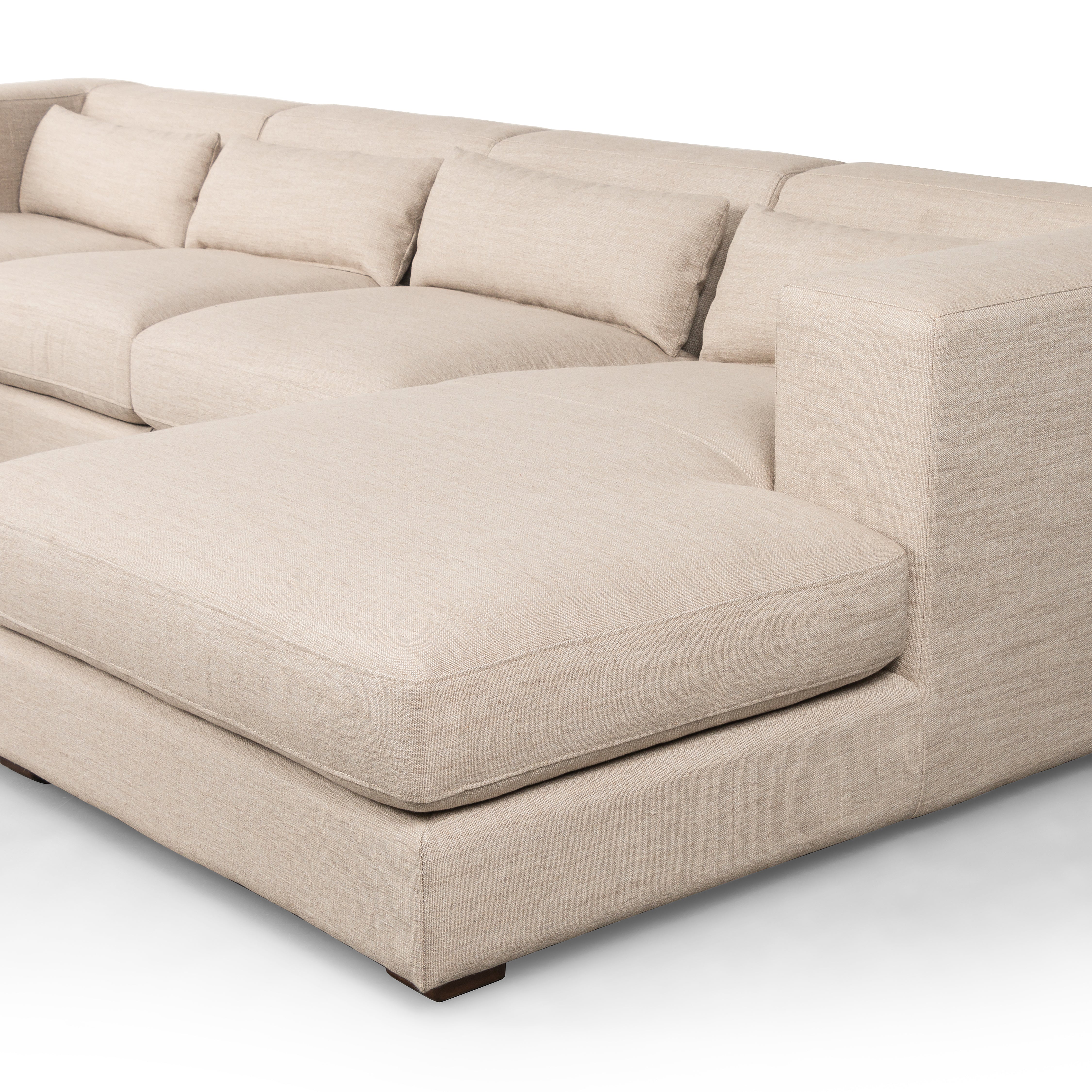 Versatile in style and functionality, this sectional features wide track arms with loose feather-blend seat and back cushions. Additional lumbar pillows add a layer of softness to grand, modern styling upholstered in family-friendly performance fabric. Performance fabrics are specially created to withstand spills, stains, high traffic and wear, ensuring long-term comfort and unmatched durability.