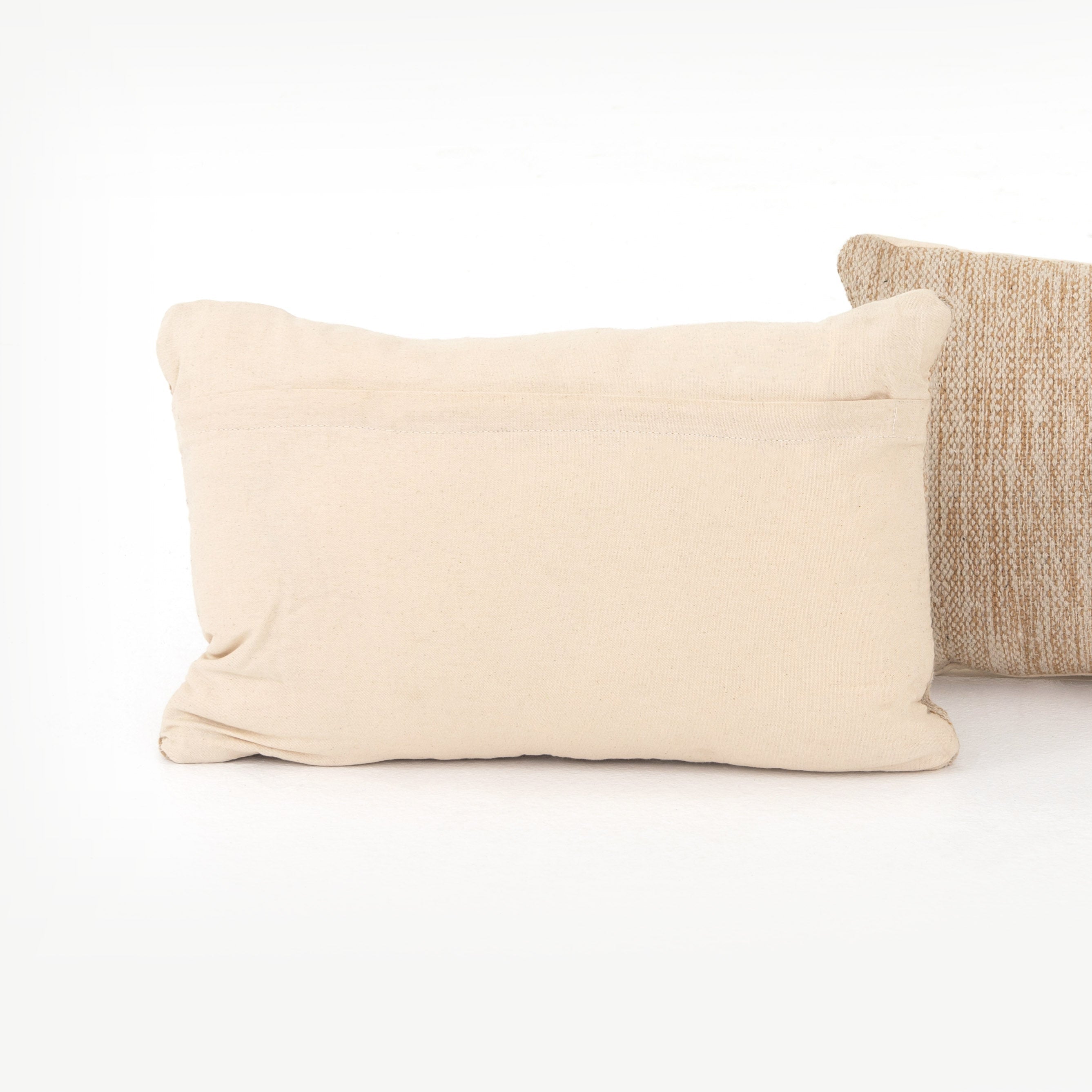 A light mustard and cream ombre blend brings textural depth to handwoven lumbar-style throw pillows of 100% cotton.