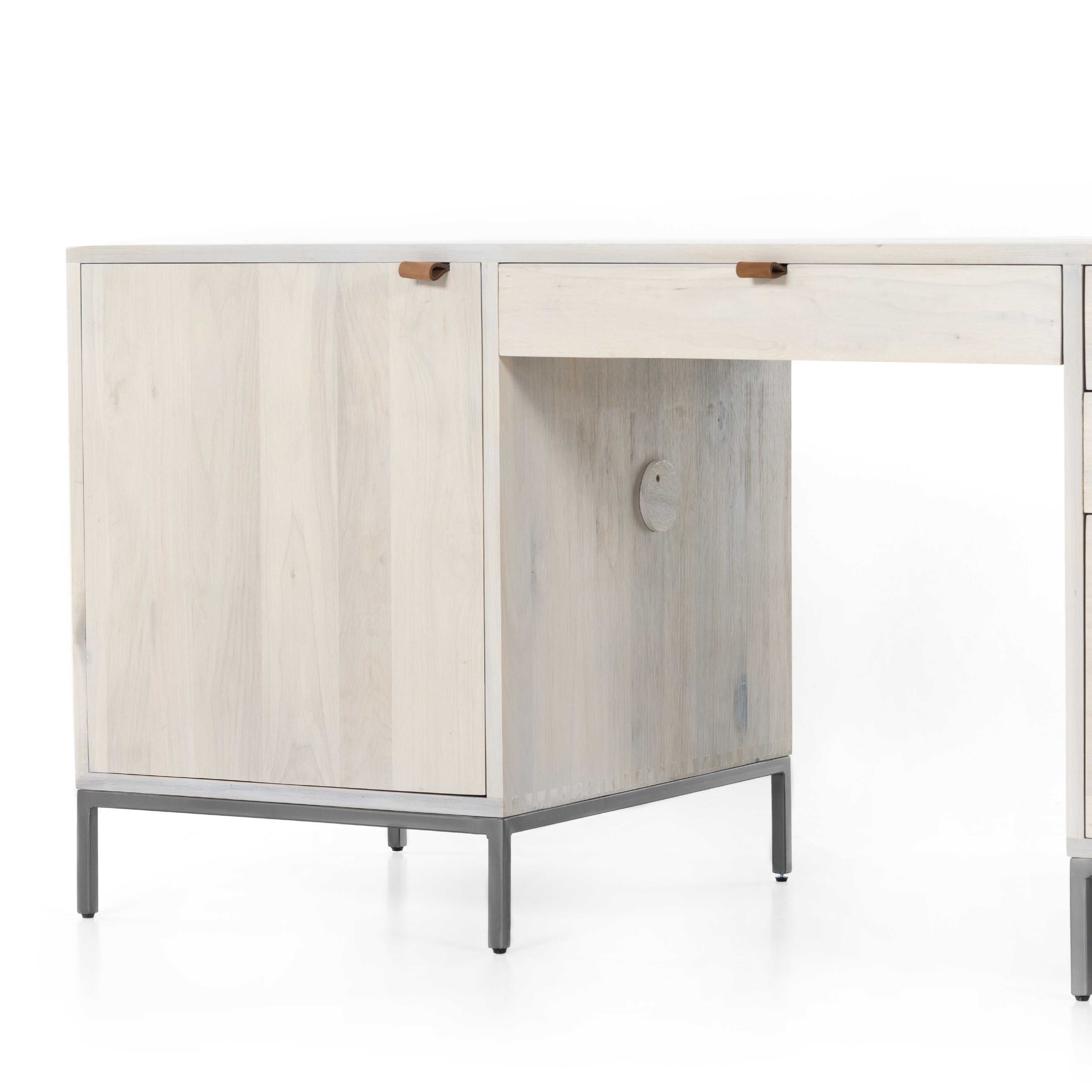 Inspired by clean midcentury design, solid poplar and raw iron fuse for style and storage alike, offering spacious drawers plus cabinetry. Metal-secured leather pulls add a textural element of surprise. Great solo or paired with matching modular desk components.