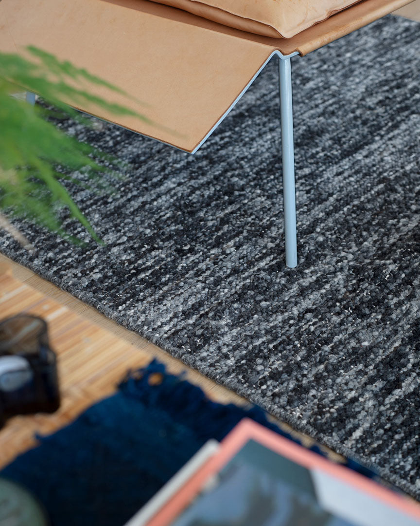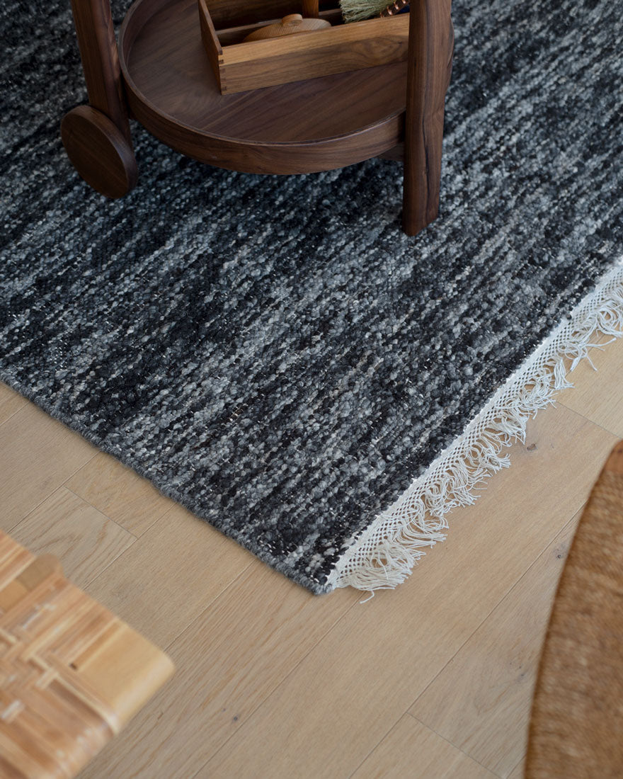 Hand Woven off white wool area rug. This soft wool carpet was made by hand in Northern India. Hand woven New Zealand sheep's wool with Linen. Woven with a traditional hand loom. New Zealand wool rugs are durable and soft to the touch. High quality wool rugs. Off white color with black and brown speckle.