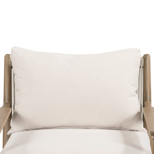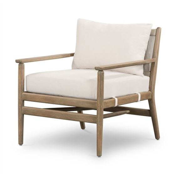 Made with FSC-certified eucalyptus, tapered legs and paddle arms lend a slim, structured look to outdoor-friendly seating with durable, Velcro-secured box cushions in a versatile ivory. Linear rope detailing on back adds novel texture. Cover or store indoors during inclement weather and when not in use.