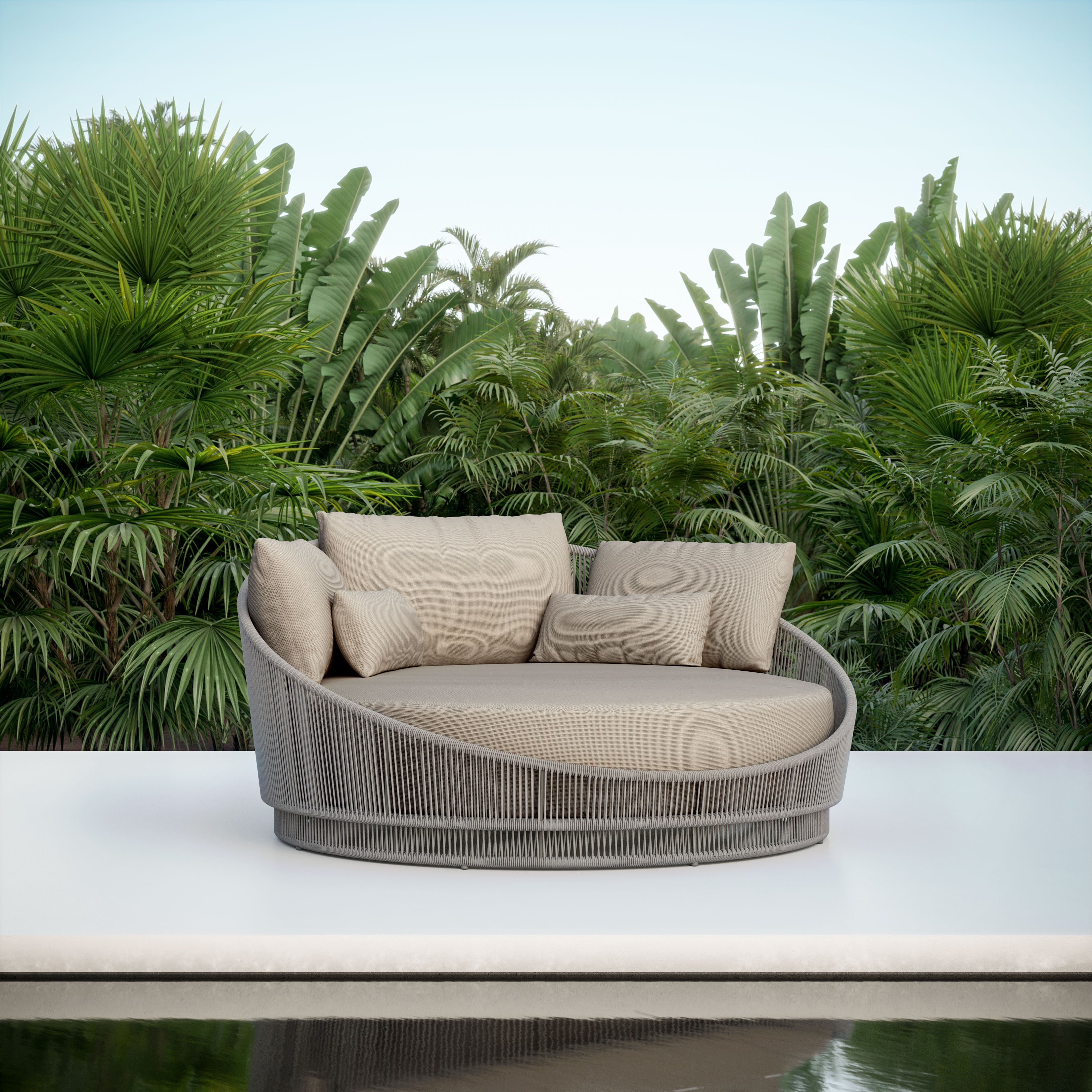 The Palma Day Bed by Azzurro Living is the definition of coastal modern. Featuring a sweeping profile paired with an innovatively luxuriant, all-weather, textelene rope. A striking curved back keeps things relaxed while soft and boldly proportioned cushions are covered in a performance fabric that’s designed and engineered to withstand the harshest elements. The Palma collection is an expression of true craftsmanship and style, pushing outdoor furniture design to new heights.