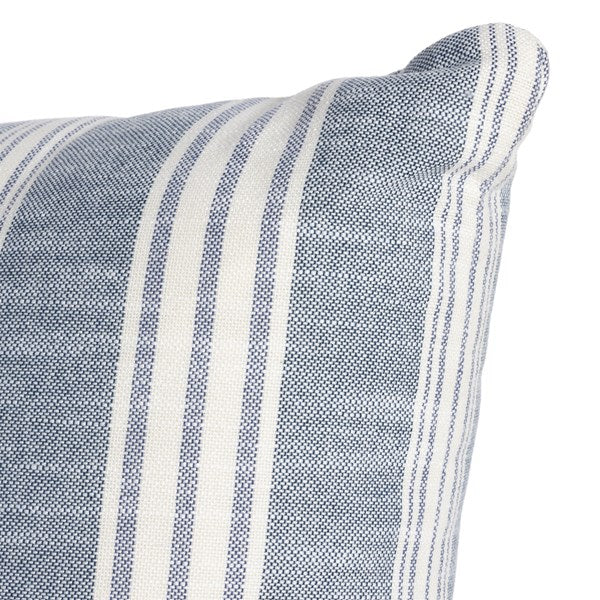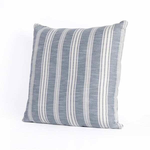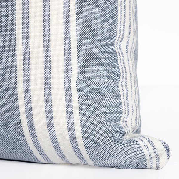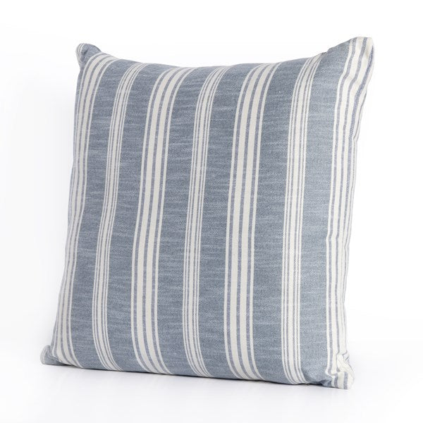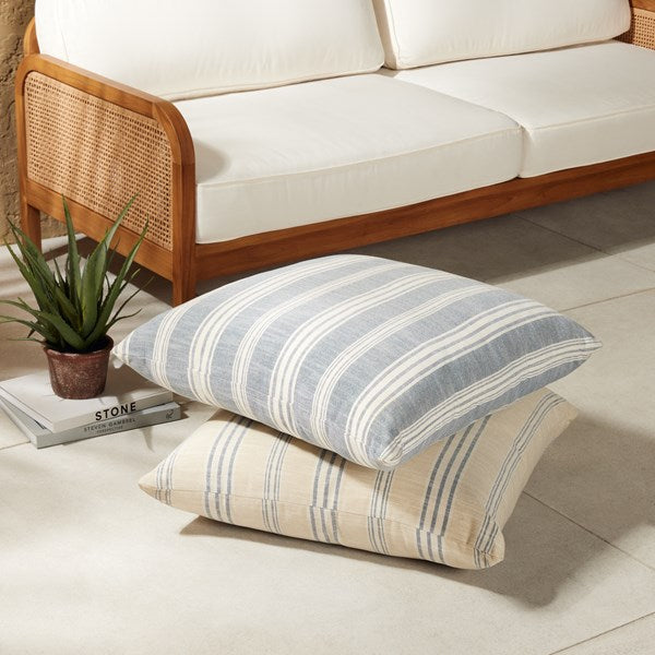Add extra outdoor seating in a flash with a two-pillow set of linen-like floor cushions, with a blue stripe pattern for a nautical look. Store indoors during inclement weather and when not in use.