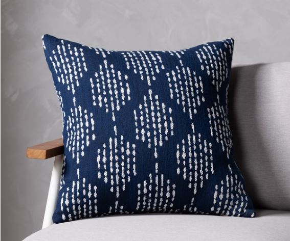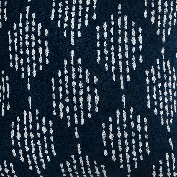 Bring an abstract touch to outdoor styling. This set of double-sided throw pillows features an embroidered diamond pattern in a versatile white on indigo, with poly fill and a bottom zipper for seamless ease. Store indoors during inclement weather and when not in use.