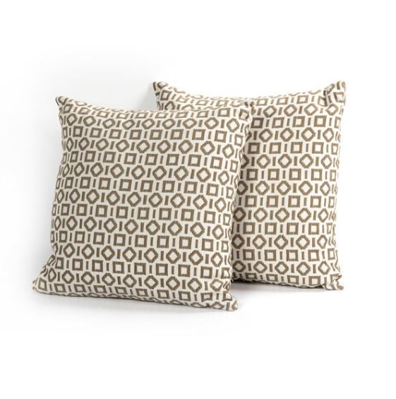 Bring a geometric look to outdoor decor, with a two-piece set of UV-resistant throw pillows. Cover or store indoors during inclement weather.