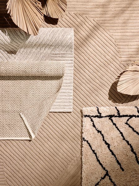 Made entirely from recycled materials, linear patterns plus a high/low pile contrast work a high-texture look to outdoor styling. Store inside during inclement weather and when not in use.
