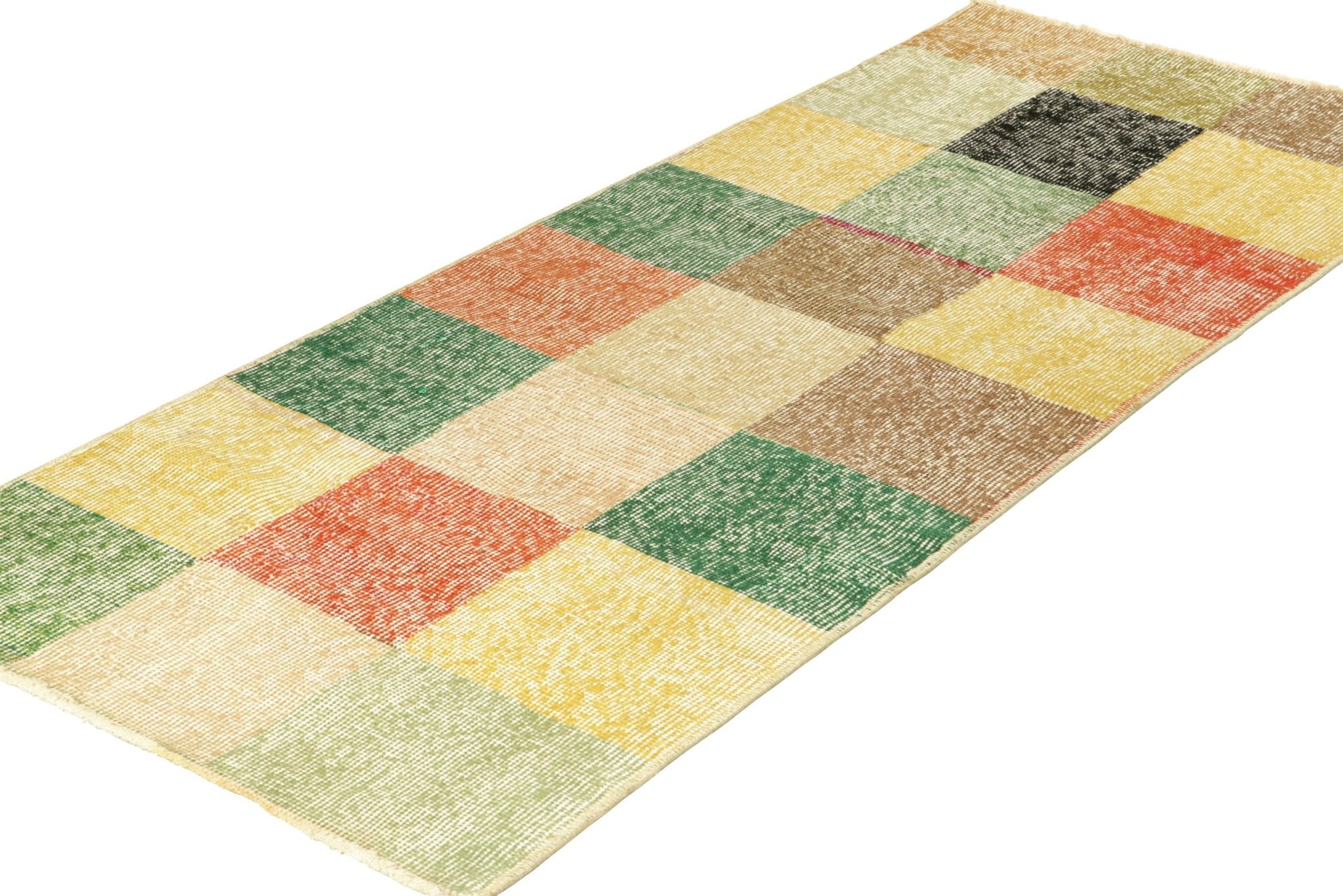 Hand-knotted in wool circa 1960-1970, this 2x5 vintage rug is an exciting new piece in Rug & Kilim’s Mid-Century Pasha Collection, a rare curation believed to hail from mid-century Turkish artist and icon Zeki Muren.