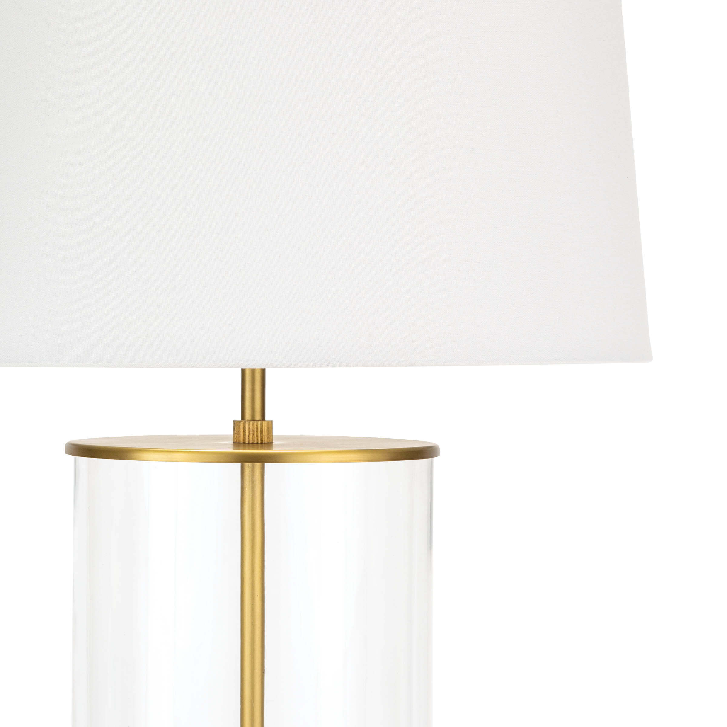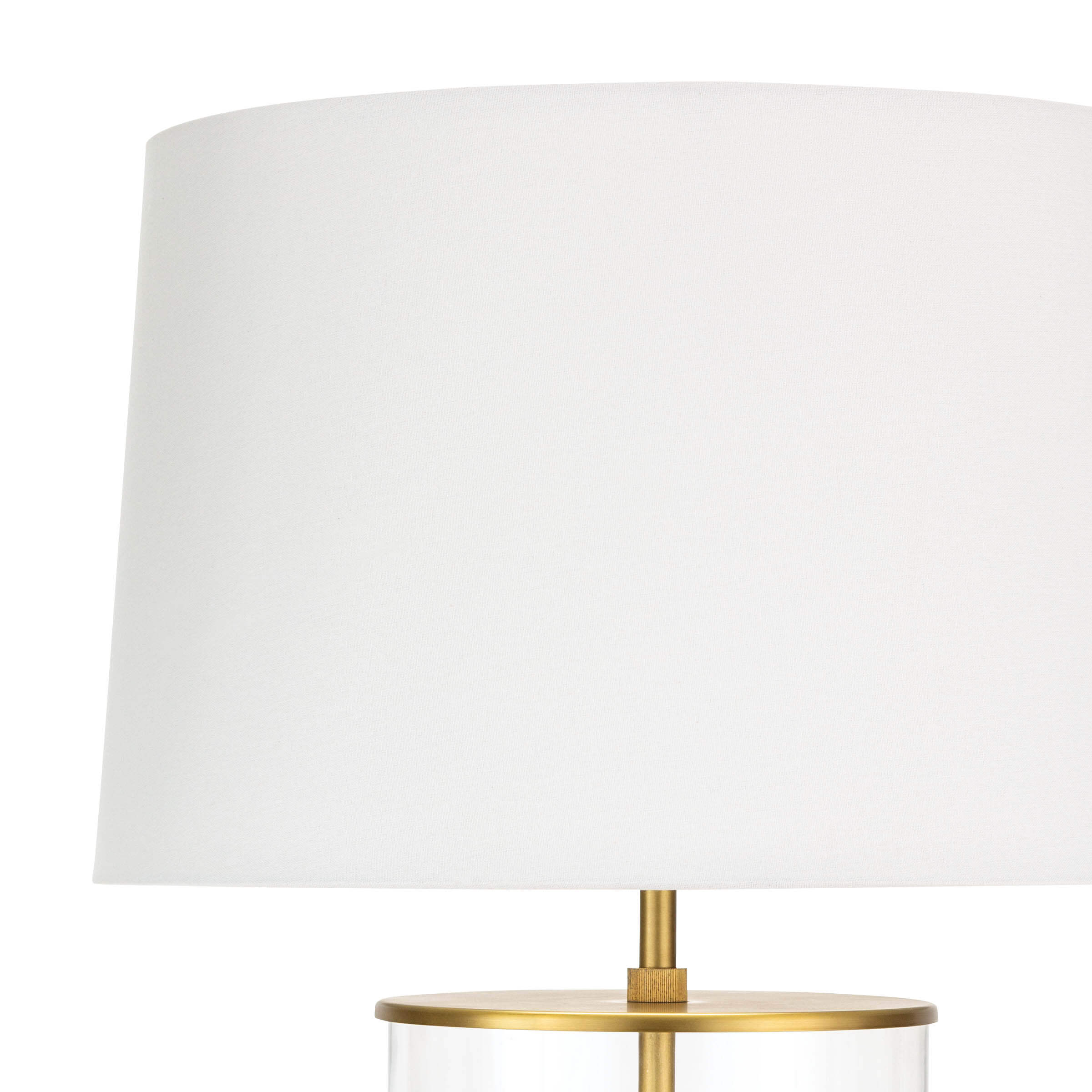 With it's classic, cylindrical glass body and natural brass detailing, the Magellan Glass Table Lamp is well suited in both traditional and modern spaces. Create depth and texture by filling with collectibles or natural elements. The shade and lid easily lift off for arranging and cleaning.