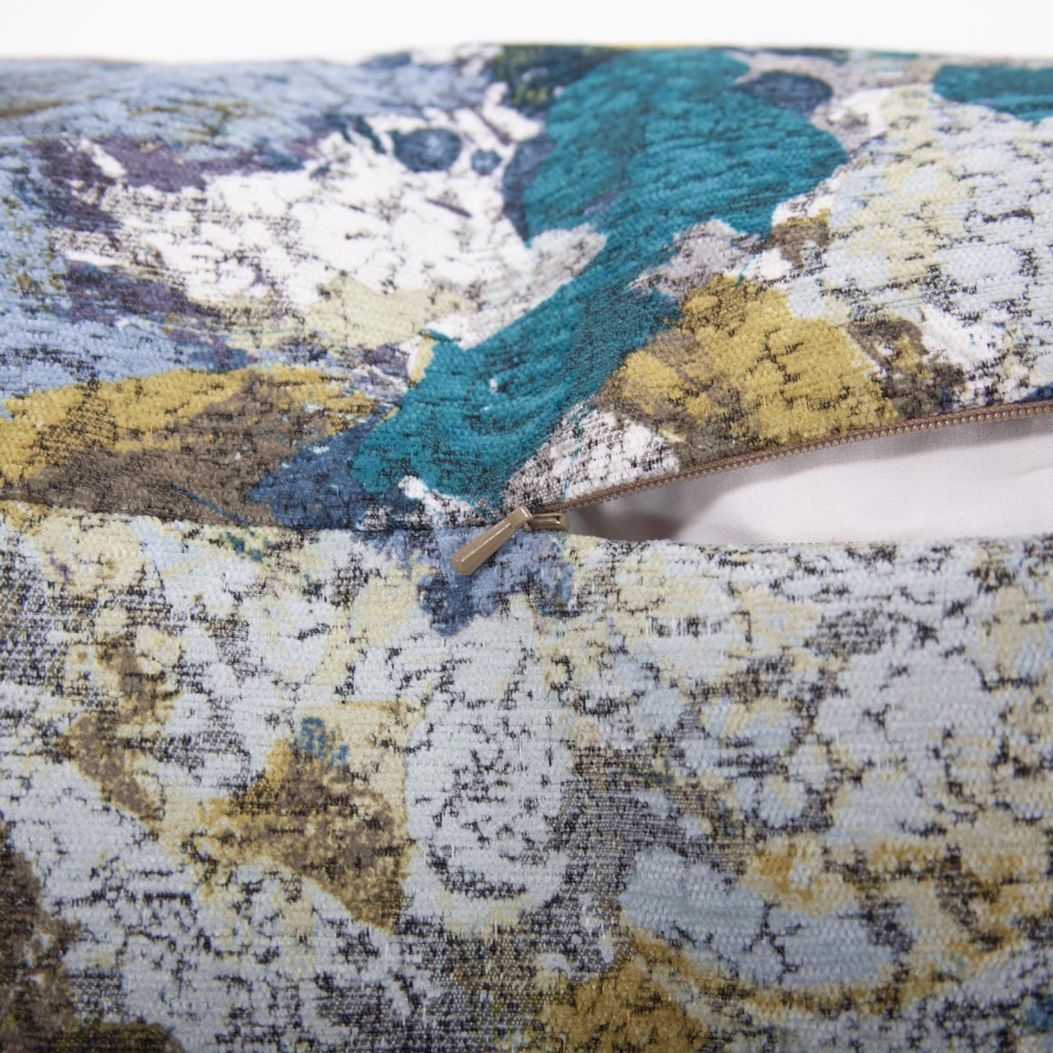 Change up color themes or add pop to a simple sofa or bedding display by piling up the pillows in a multitude of colors, textures and patterns. This Stanton Pillow features a luxuriously soft fabric adorned with splashes of rich color with a burnout texture. Includes a lush down pillow fill insert. A hidden zipper closure allows the cover to remove for easy care. Also available with a polyester pillow insert. Also available in a 24 and kidney size.