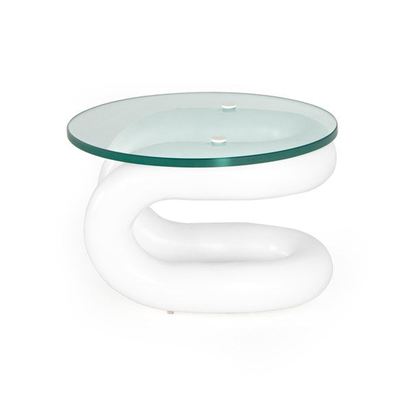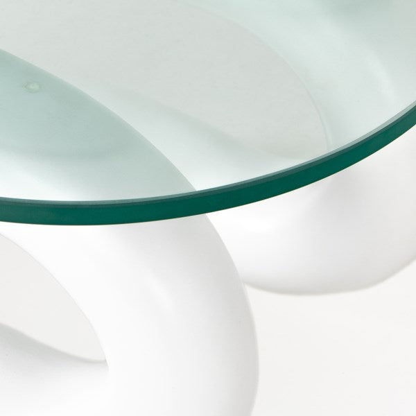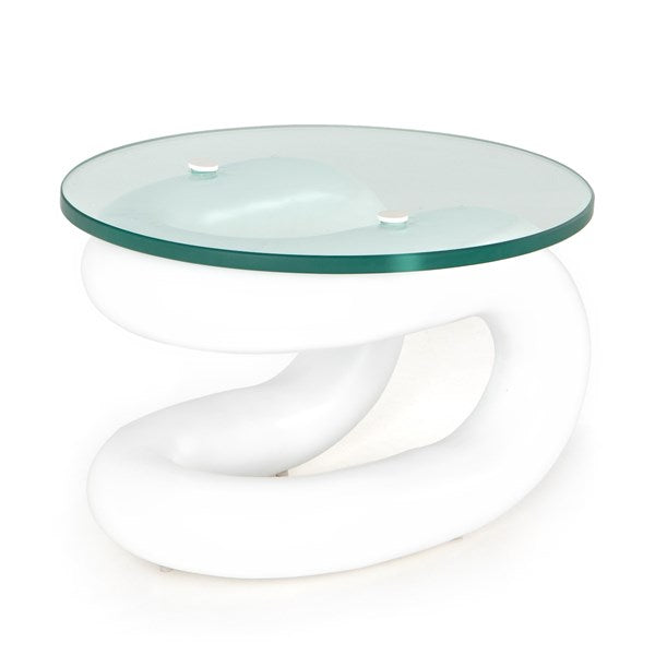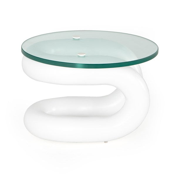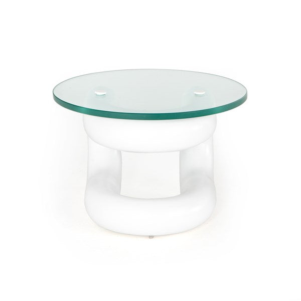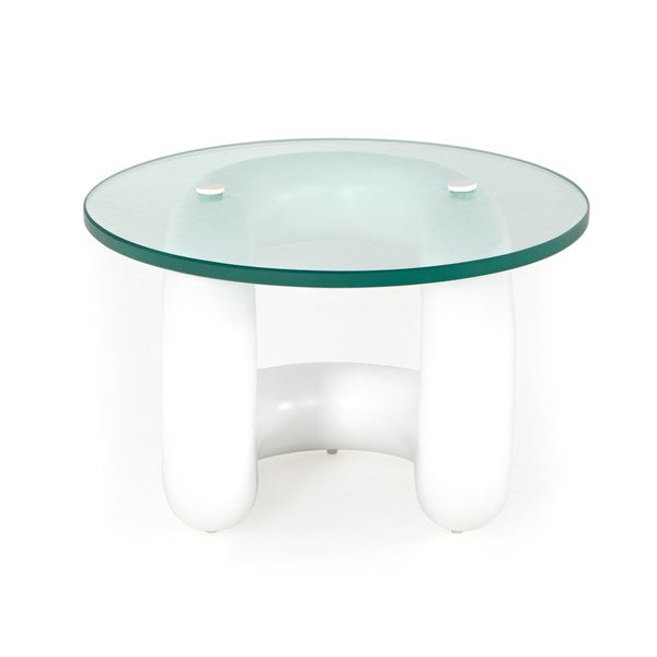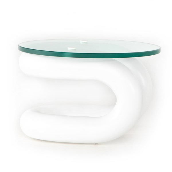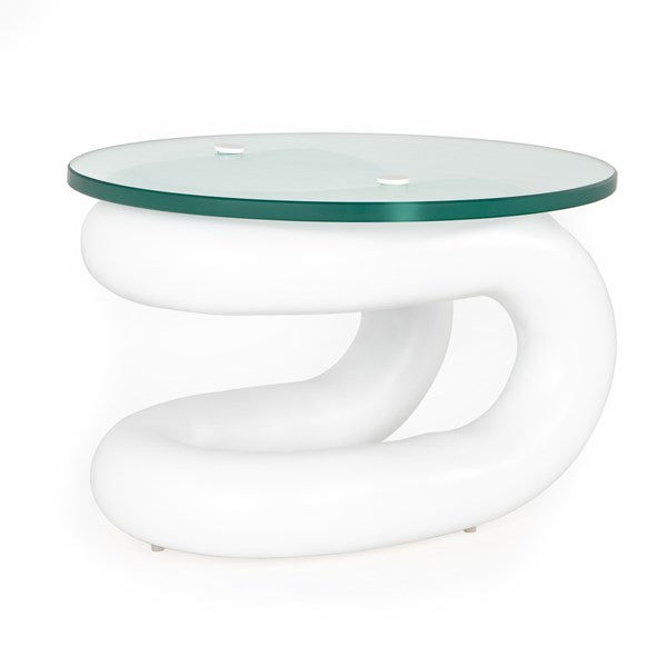 Pay homage to playful Eighties-era design with a sculpted, tube-style white aluminum table with a fixed tempered glass top.
