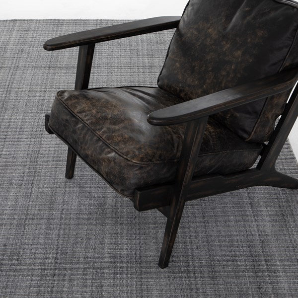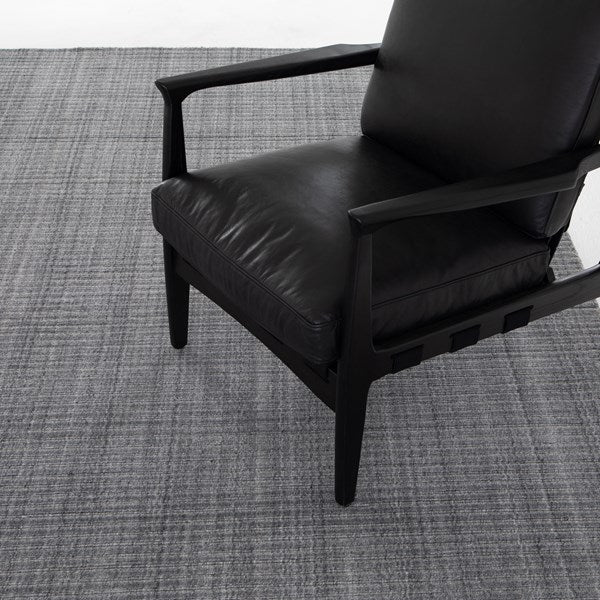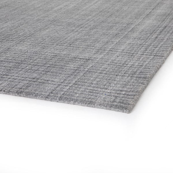With a short pile and luxuriously soft hand, rows of alternating pile and loop viscose deliver a linear look and fine-tailored feel to this heathered charcoal area rug.
