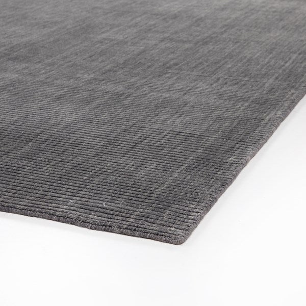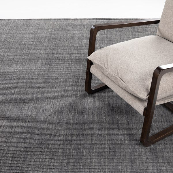 Stylishly straightforward. Slate grey area rug of 100% wool brings texture into play.