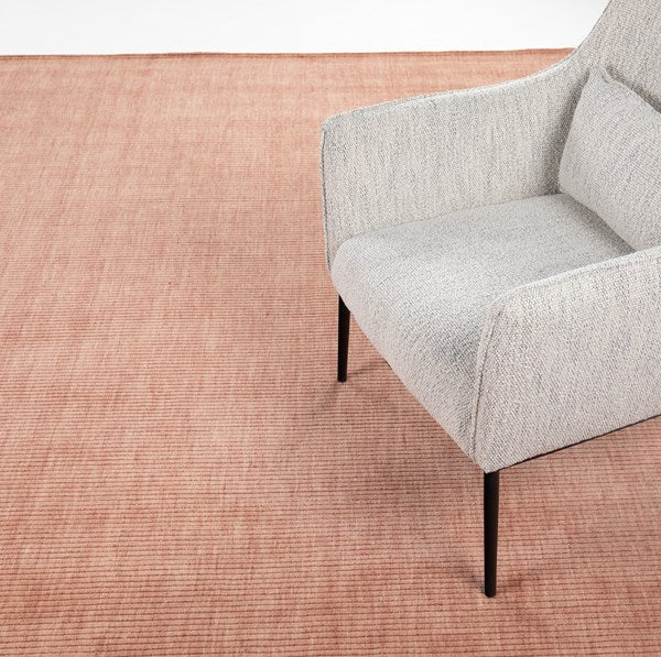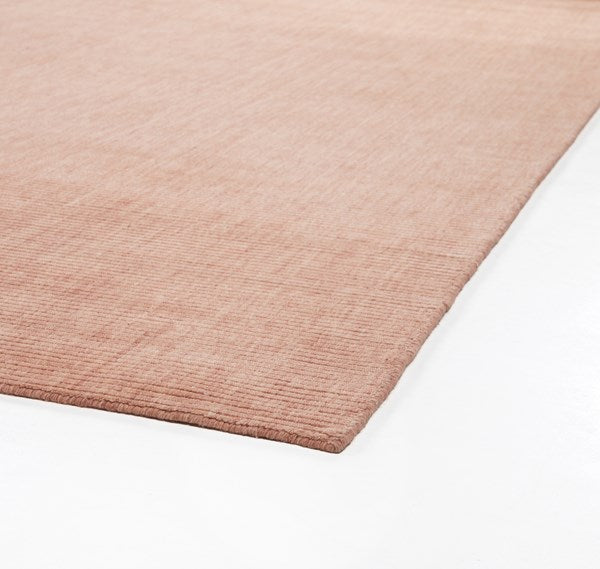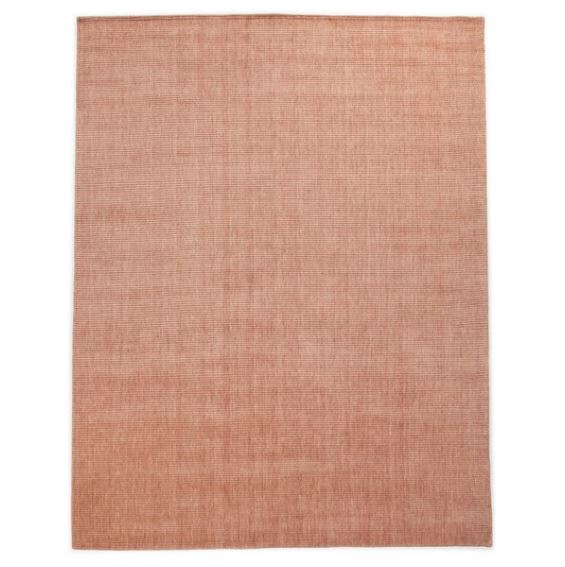 Stylishly straightforward. Rose-colored area rug of 100% wool brings texture - plus a pop of color - into play.