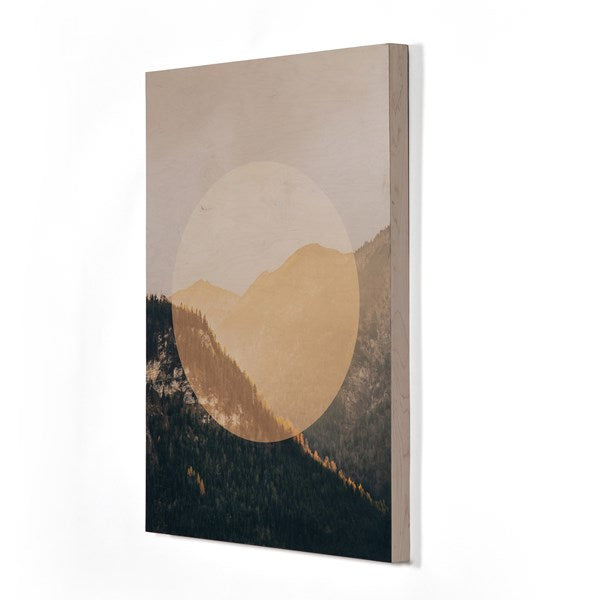 An original rendering by London-based photographer Joe Mania, this shape-driven work is directly printed onto the surface of a dimensional artbox of 100% American maple, with wood graining lending a natural look. Handmade in Austin, Texas and ready to hang via fixed French cleat hardware.