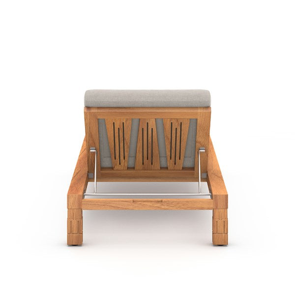 High style, made for lounging. Made from FSC-certified teak with unique CNC carving for a global-spun look, with Velcro-secured cushioning in a versatile stone grey. Cover or store indoors during inclement weather and when not in use.