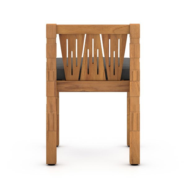 Made from FSC-certified teak with intricate CNC carving for a unique, global-spun look, Velcro-secured seating in a versatile charcoal. Cover or store indoors during inclement weather and when not in use.
