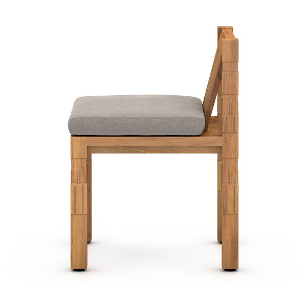 Made from FSC-certified teak with intricate CNC carving for a unique, global-spun look, Velcro-secured seating in a versatile stone grey. Cover or store indoors during inclement weather and when not in use.