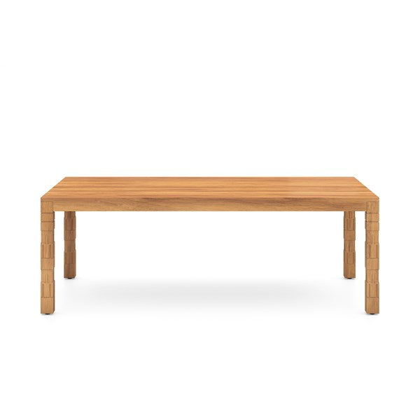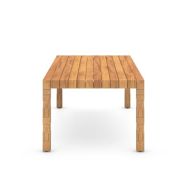 Made from solid FSC-certified teak, unique CNC carving brings a beautiful, global-spun look to an outdoor-friendly dining table and classic Parsons silhouette. Seats eight comfortably. Cover or store indoors during inclement weather and when not in use.