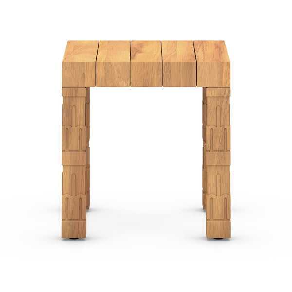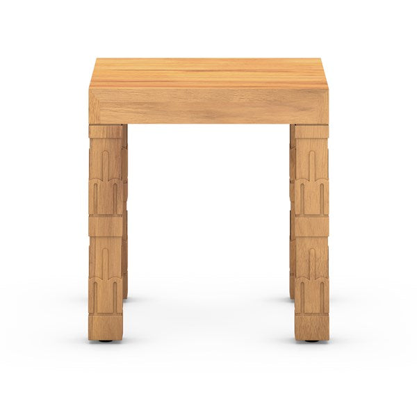 Made from solid FSC-certified teak, unique CNC carving brings a beautiful, global-spun look to an outdoor-friendly end table in a classic Parsons silhouette. Cover or store indoors during inclement weather and when not in use.