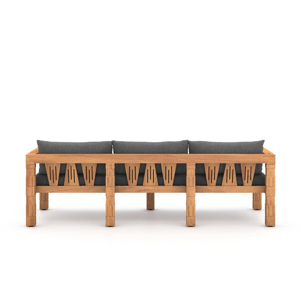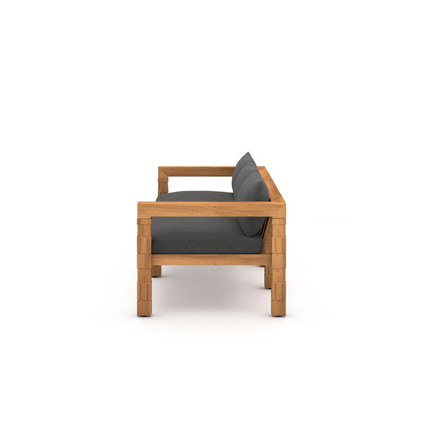 Made from FSC-certified teak with unique CNC carving for a global-spun look, with Velcro-secured seating in a versatile charcoal. Cover or store indoors during inclement weather and when not in use.