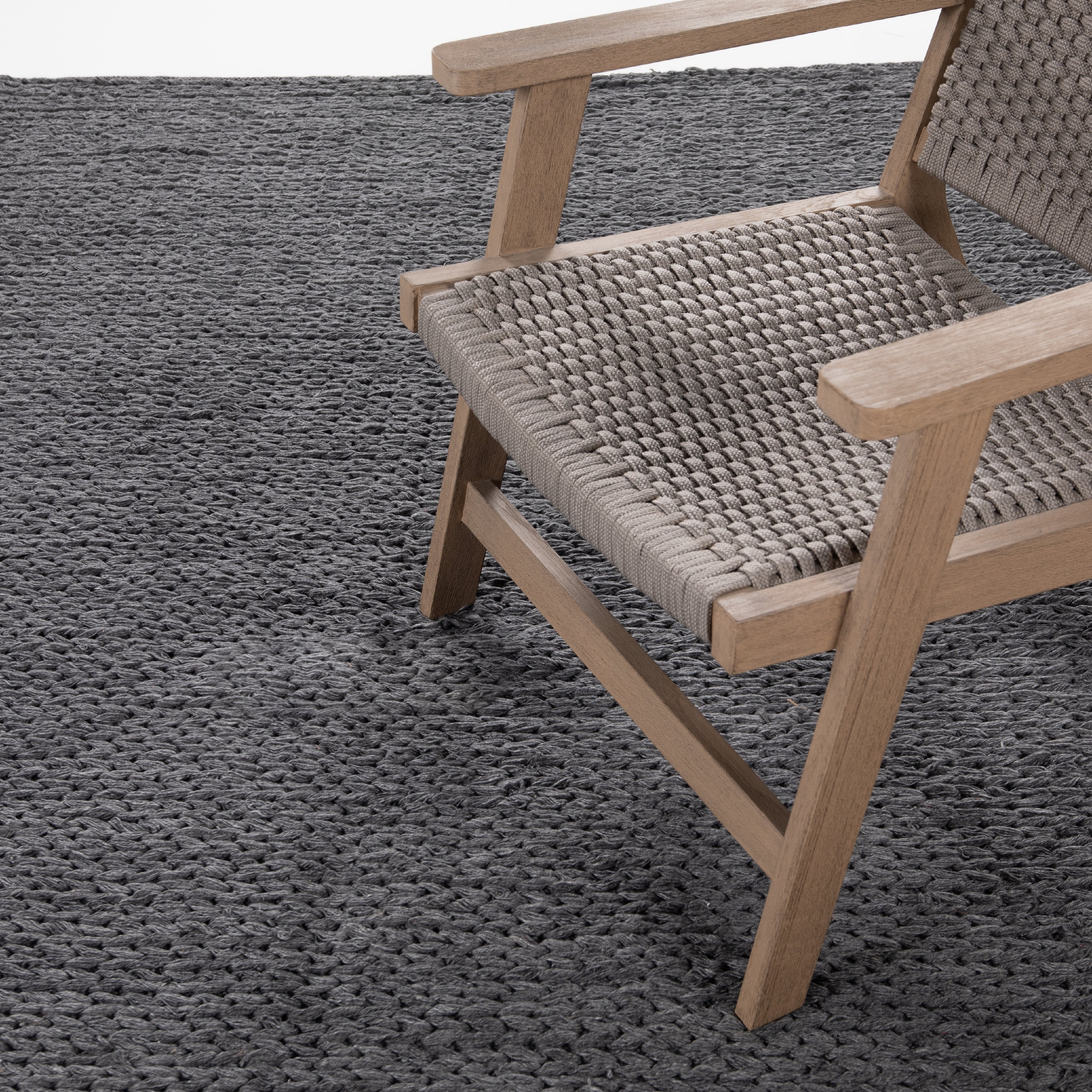 Made entirely from recycled materials, high texture and a heathered charcoal hue make for the perfectly stylish area rug, indoors or out. Cover or store inside during inclement weather.
