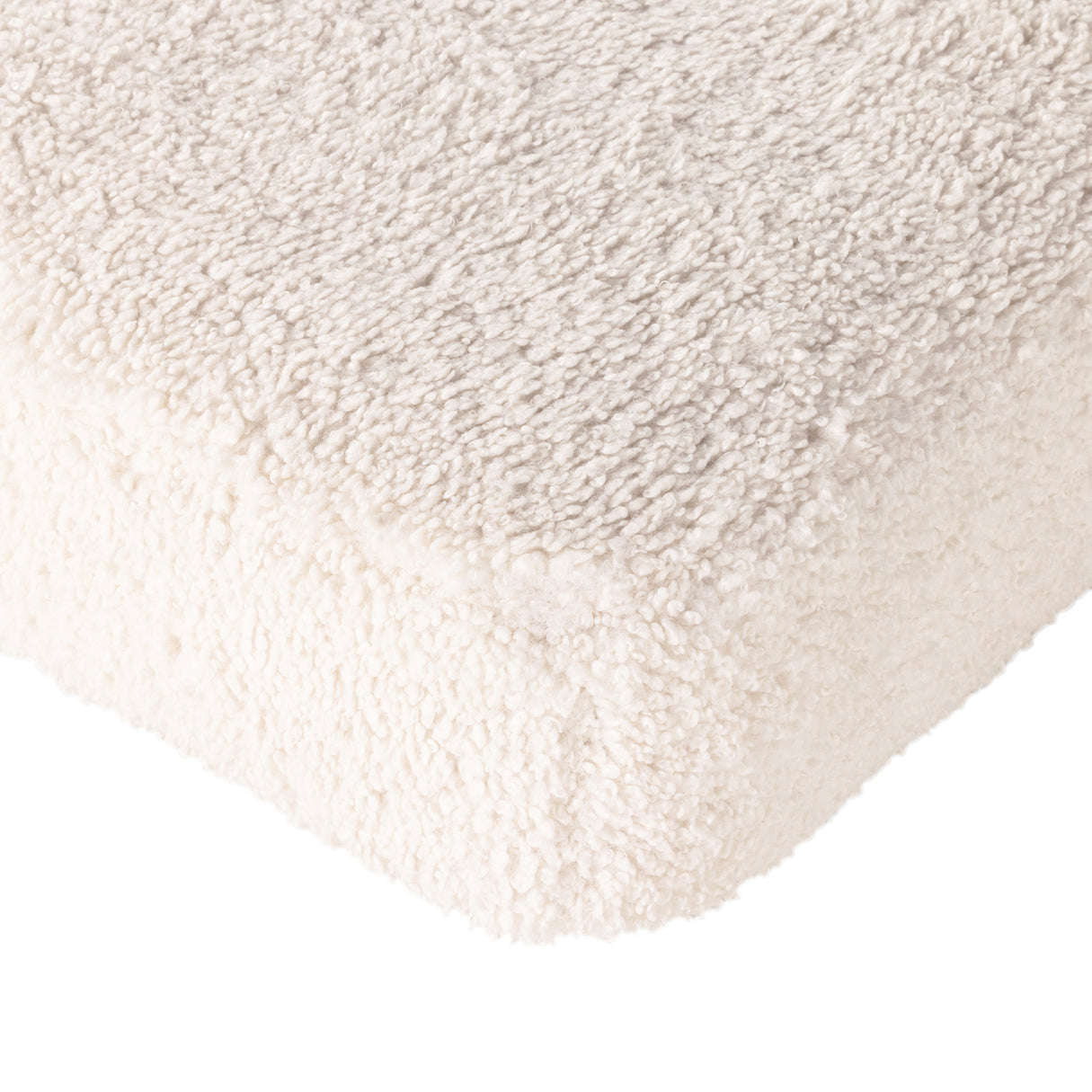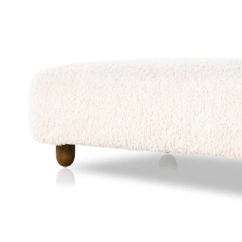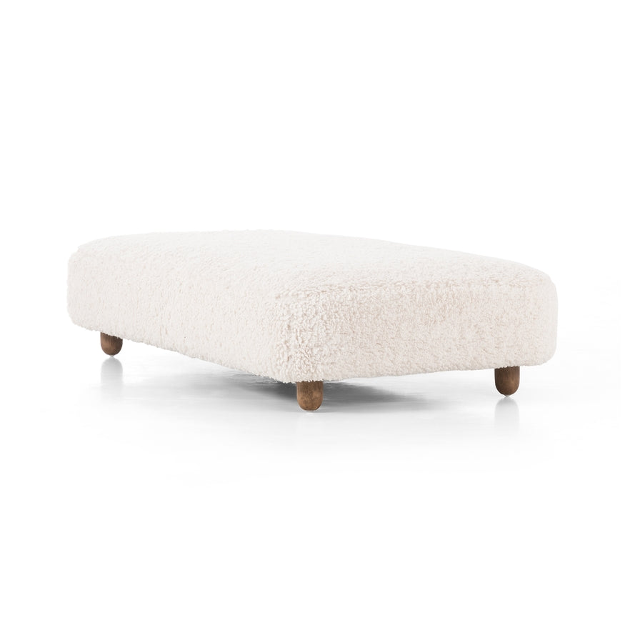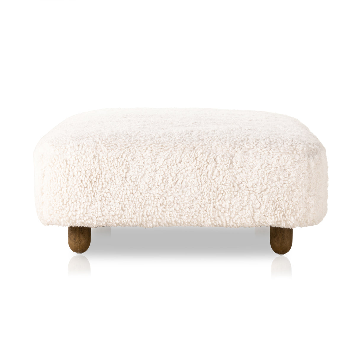 Place this ottoman just about anywhere for a subtle retro vibe. Upholstered in a faux Mongolian shearling with a high pile fur. Parawood legs are wirebrushed for a warm, vintage feel.