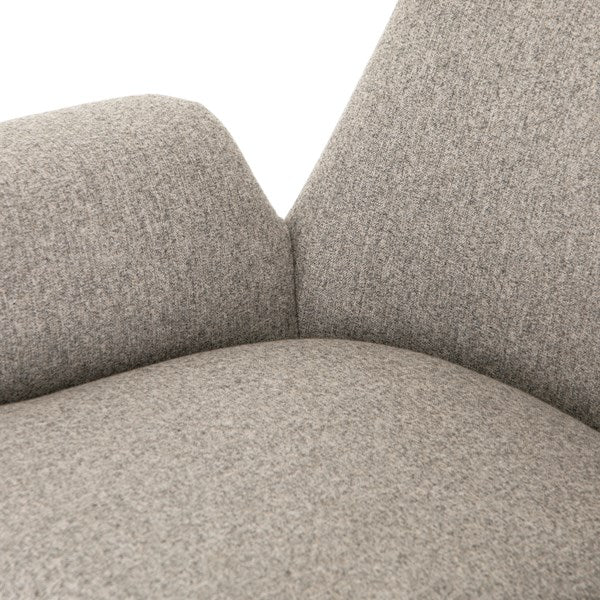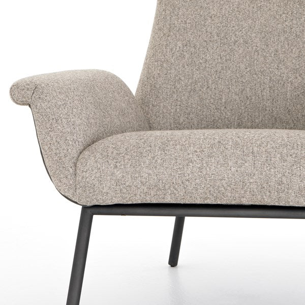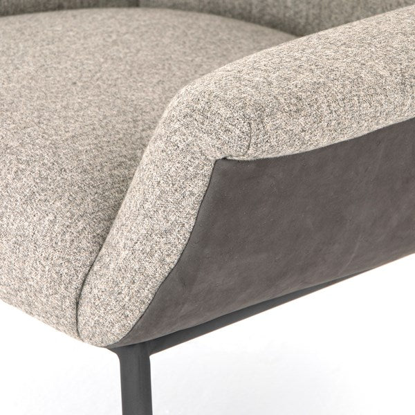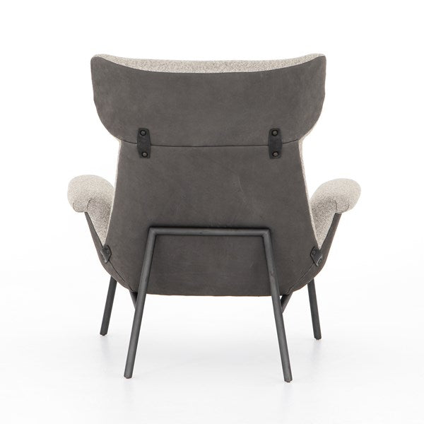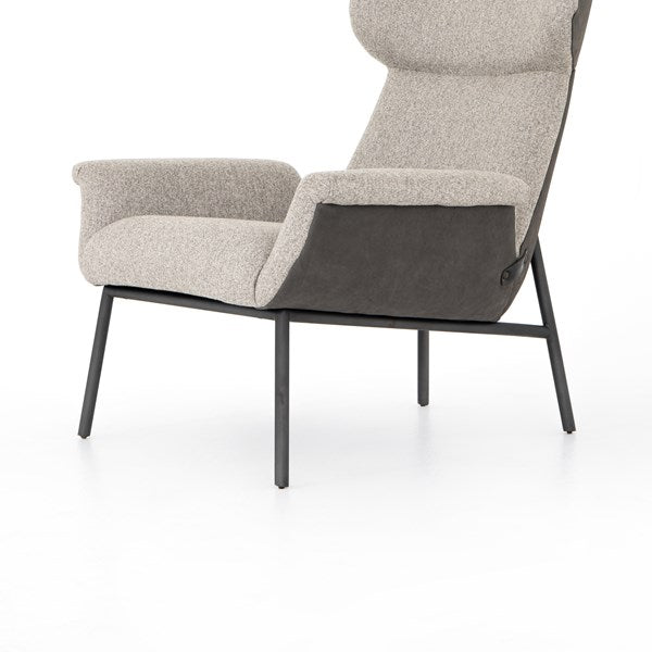 Turn up the drama. A strikingly sculpted wing chair mixes materials to modern effect, with light, herringbone-like seating cradled by buttery top-grain leather exclusive to Four Hands. Grommet straps at back seams lend a detail-driven finishing touch.