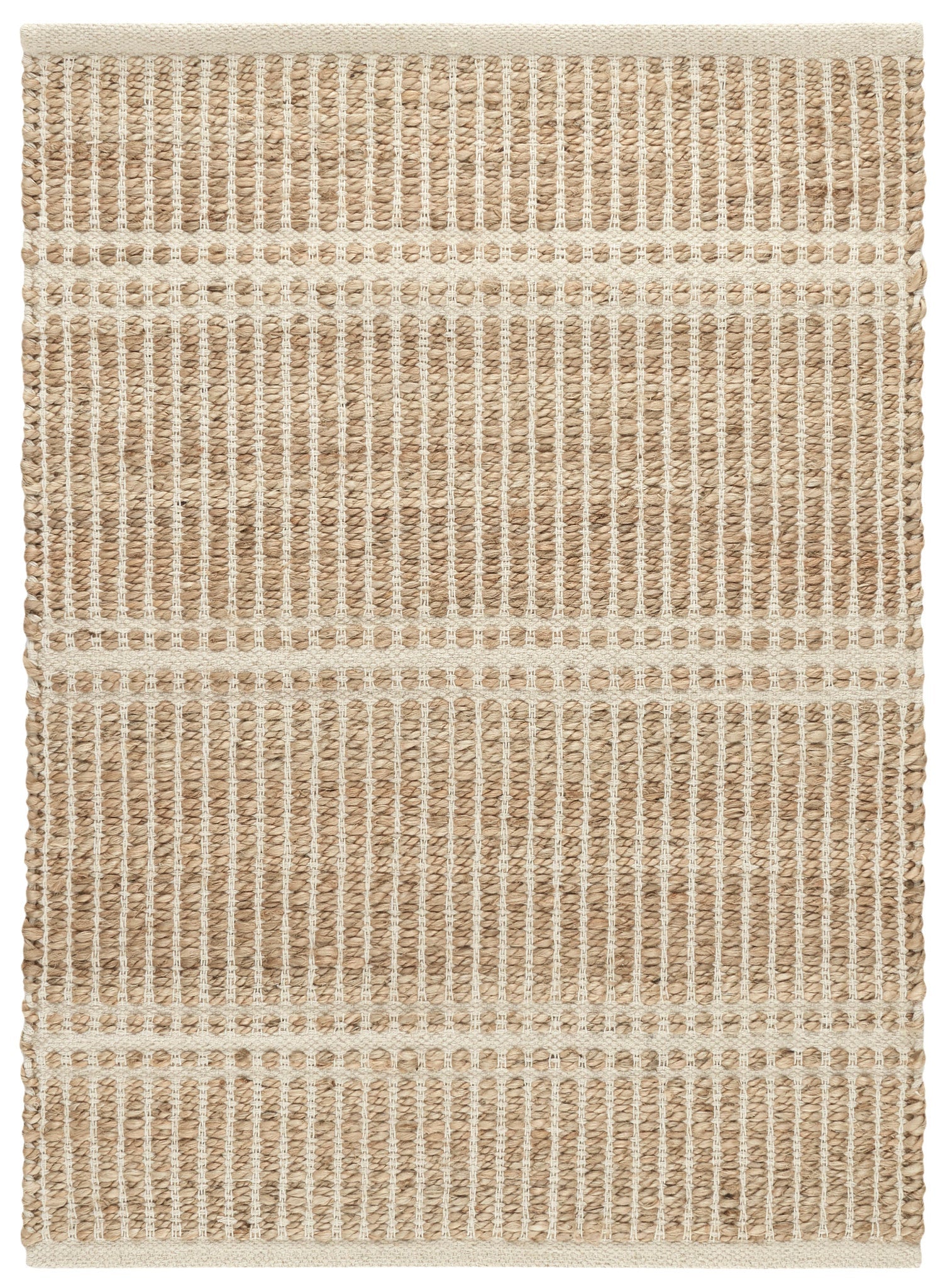 This flatwoven jute rug boasts a natural-colored palette punctuated by eye-pleasing stripes that would be equally at home in a beachy abode, country cottage, or modern farmhouse. The tightly woven, ultra-durable construction gives it a lightweight, low profile that is both soft and durable, ideal for high-traffic areas.