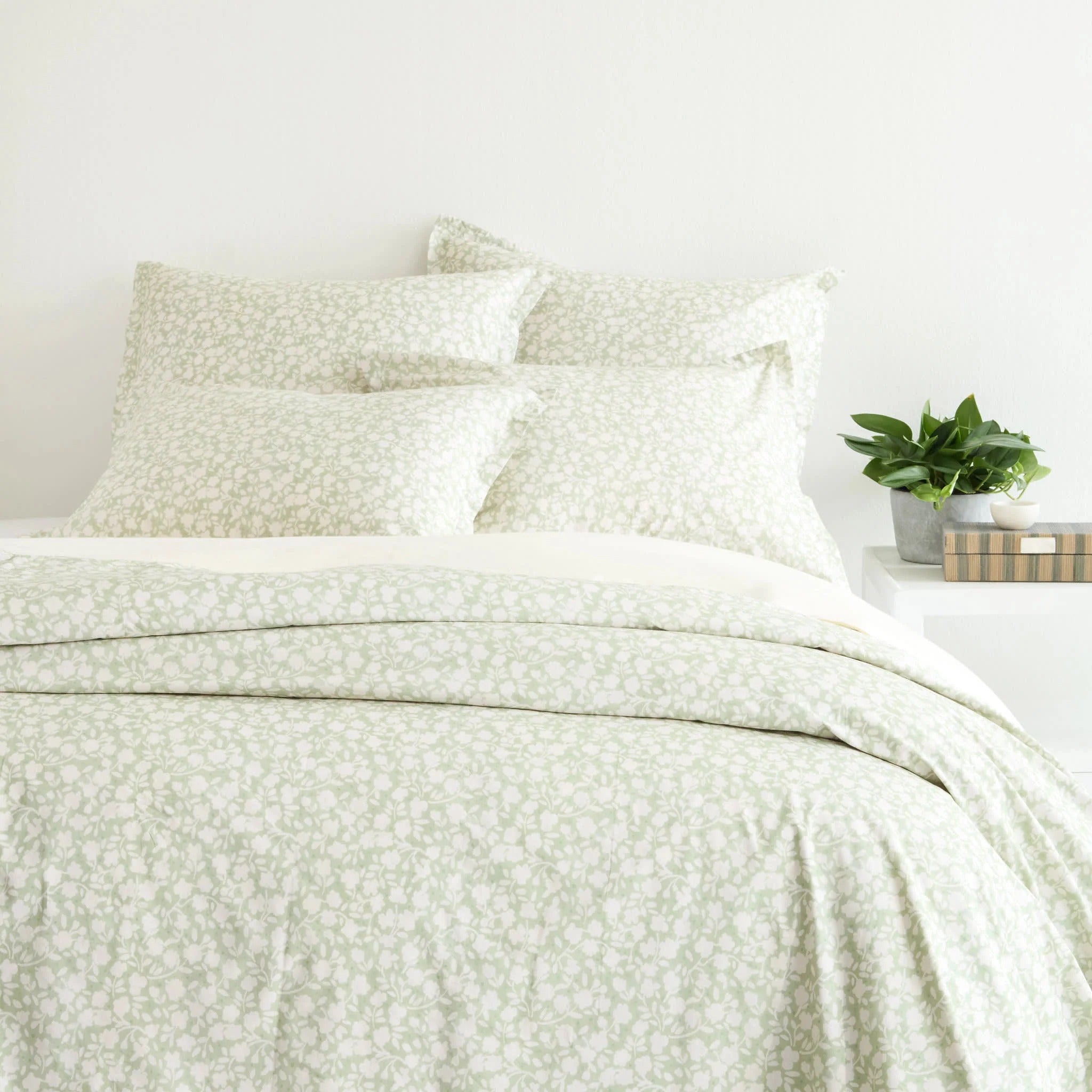 Our Aria Sage Duvet Cover is crafted from 100% crisp, cotton percale that's perfect for all sleepers and layers effortlessly. With a soft sage-green background and a delicate, ivory floral motif, it adds a fresh, inviting touch to your bed. Ideal for any time of year, it's a charming choice for any bedroom.