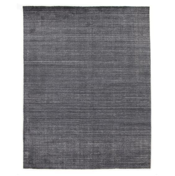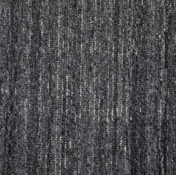 Stylishly straightforward. Dark grey area rug of 100% wool brings texture into play.