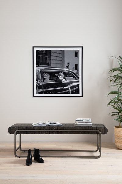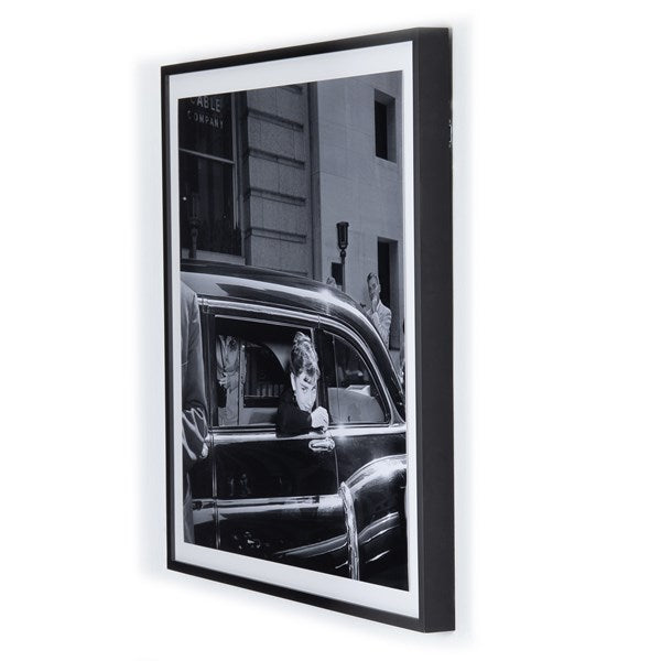 Belgian-born actress Audrey Hepburn on the set of "Sabrina" in 1954. Photo courtesy of Getty Images. Float-mounted and framed within black-finished American maple for a museum-quality look. Handmade in Austin, Texas, each print includes a certificate of authenticity commemorating the exclusive partnership between Getty Images and Four Hands Art Studio.