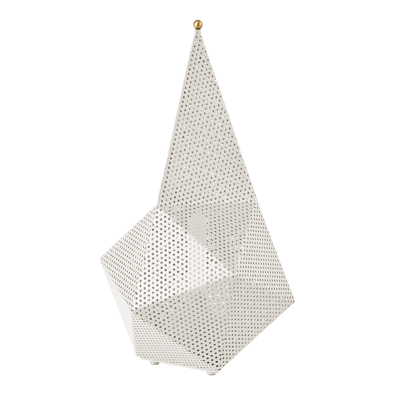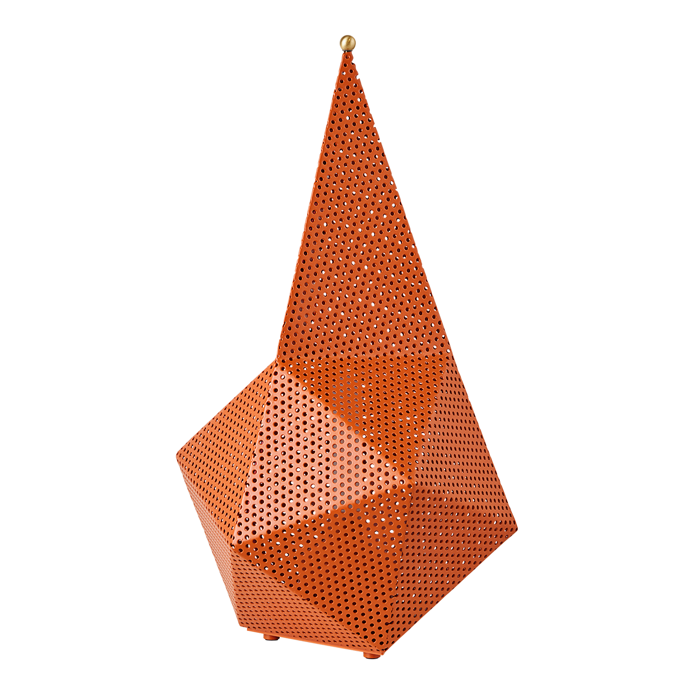 Originally designed in 1954, the Bagdad Lamp is a brilliantly offbeat showcase of Mathieu Mategot's material affinity with perforated metal. A multifaceted, cubist construction with a comet-like tail, the Bagdad’s sculptural design has proven timeless in its playful uniqueness. The new edition scales down the size by half and adds a further element of versatility by making it portable. Fitted with a touch-activated dimmer with three levels of brightness, and available in three colors – Black, White, and International Orange – the Bagdad represents a unique addition to GUBI’s Mategot portfolio, and the ever-growing collection of rechargeable lamps without limits.
