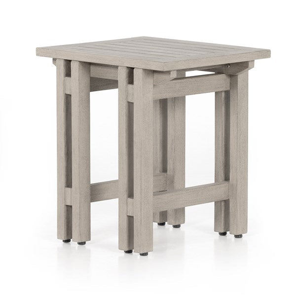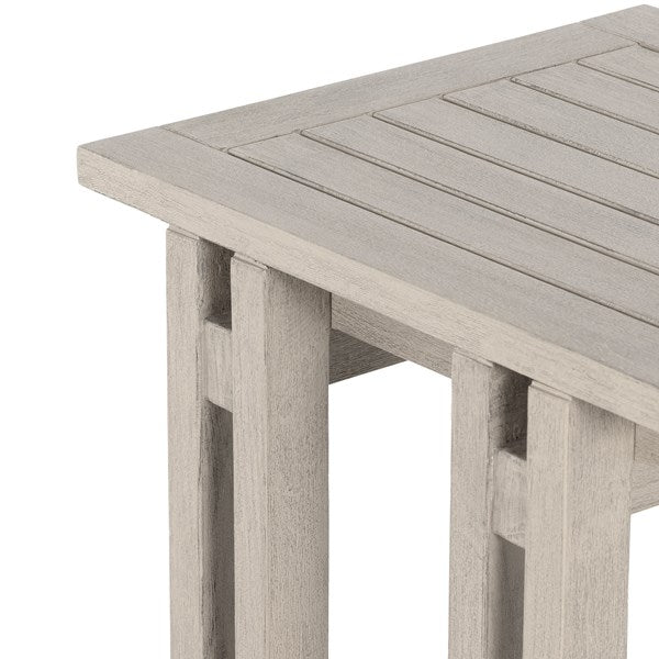 Made from solid FSC-certified teak, an architectural I-beam shape brings a primitive, craftsman-like look to this outdoor end table. Cover or store indoors during inclement weather and when not in use.