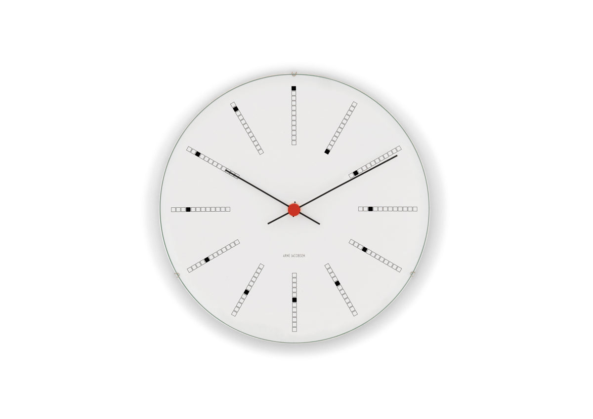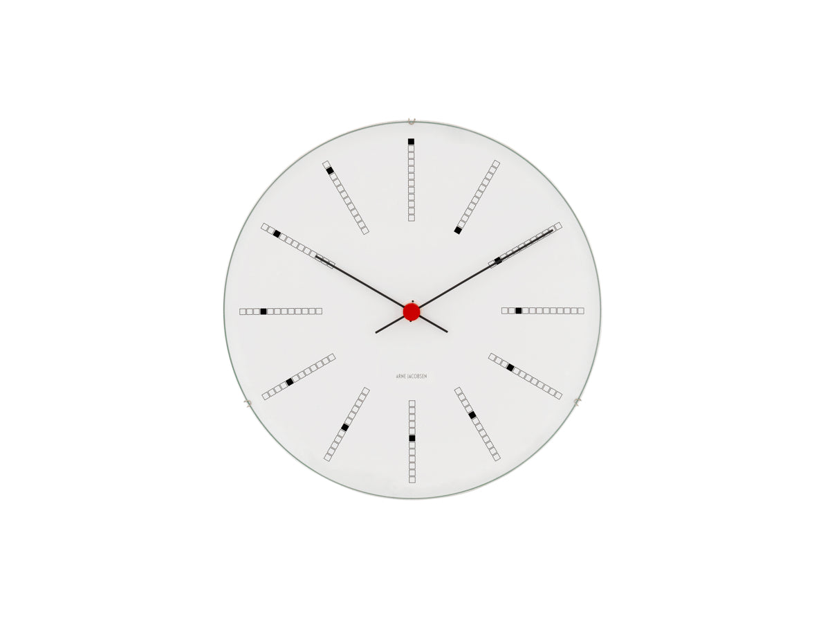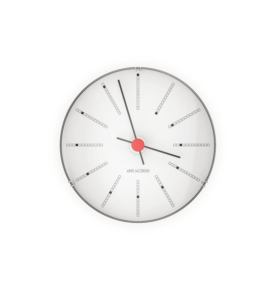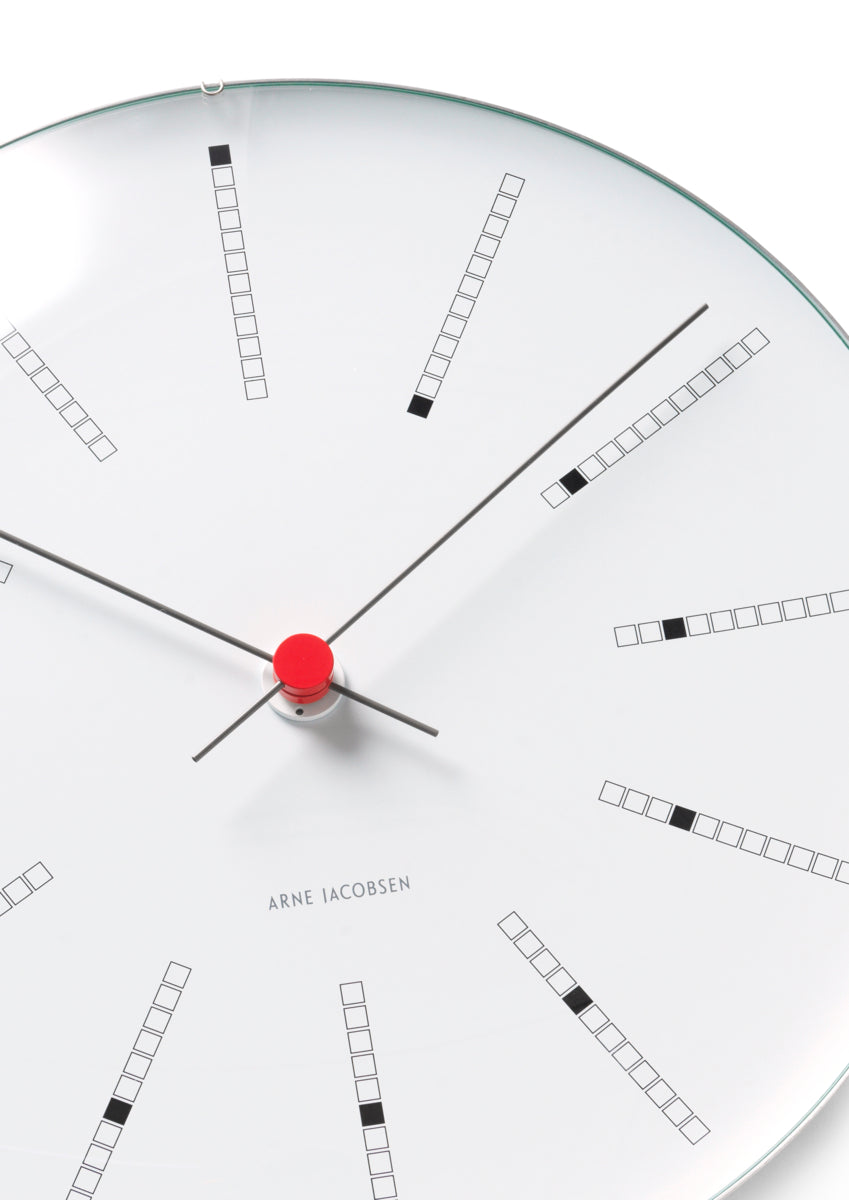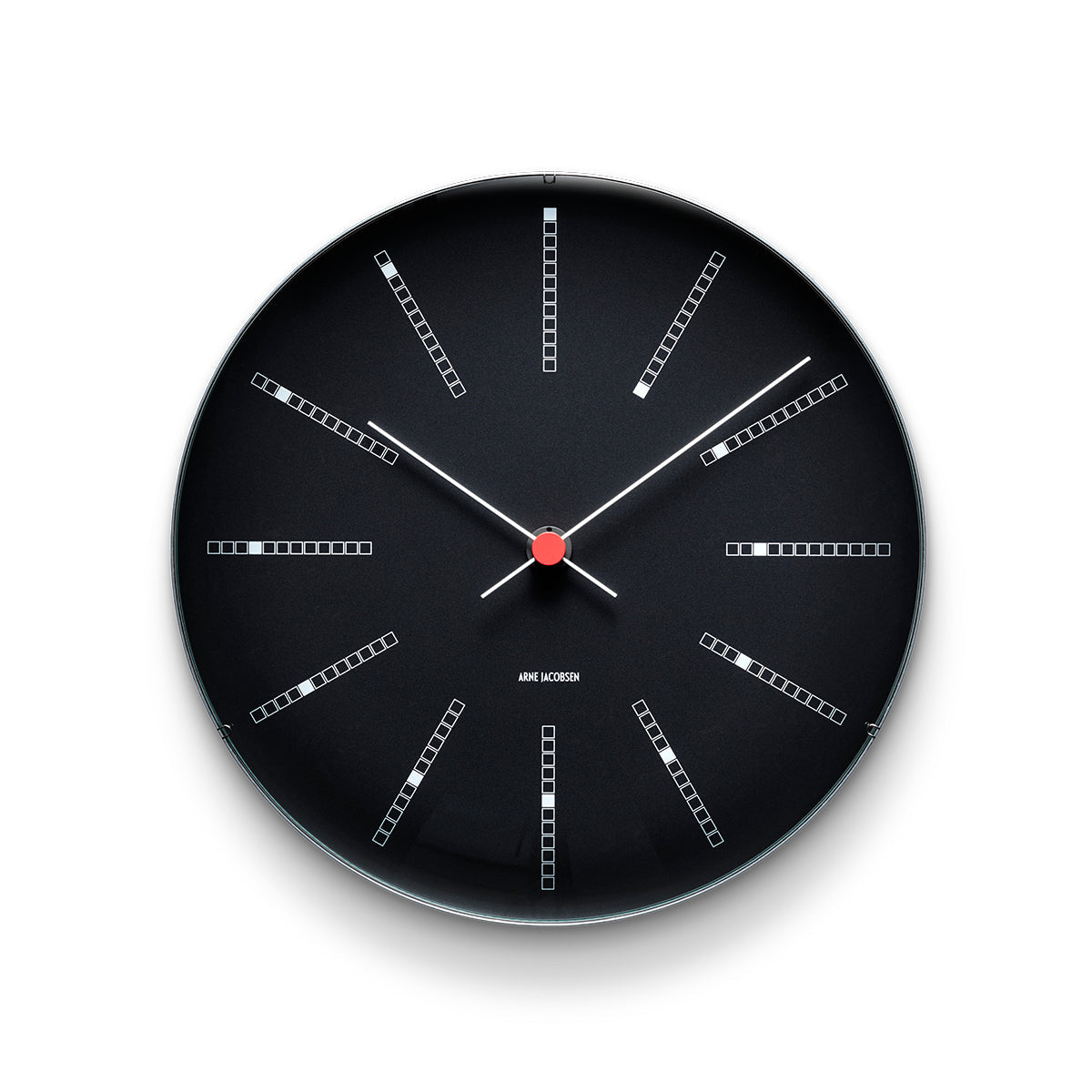 The delightful black Bankers Wall Clock by Arne Jacobsen Clocks is 11.4" in diameter. The clock was originally designed in 1971 for use in the National Bank of Denmark, but now you, too, can enjoy this classic yet contemporary wall clock in your own home. The design is classic, but created with a number of imaginative details that will make the clock stand out from the crowd and be noticed. One such elegant detail is the continuous spiral illustrating the progression of time hour by hour throughout the day.