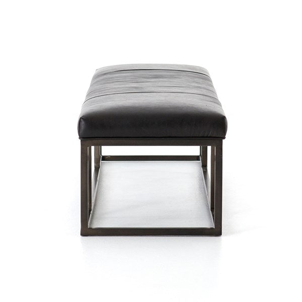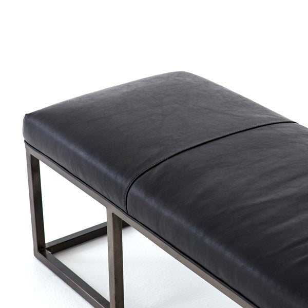 Streamlined shaping, smooth to the touch. Gunmetal-finished iron framing stands slim and structured to support a tailored top of jet black leather. Open, adaptable styling allows for versatile placement options.