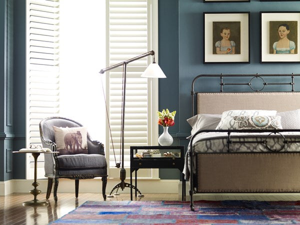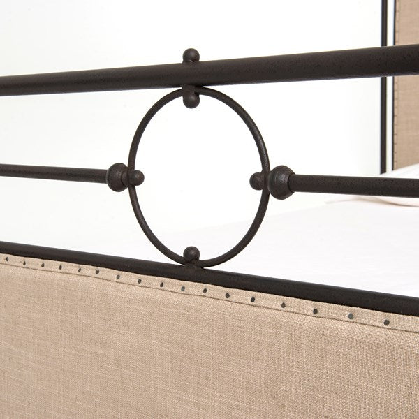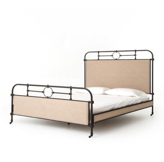 Delight is found in the details. Artful iron tubing frames calming ecru panels for a fresh twist on French industrial chic. Low-profile box spring recommended.
