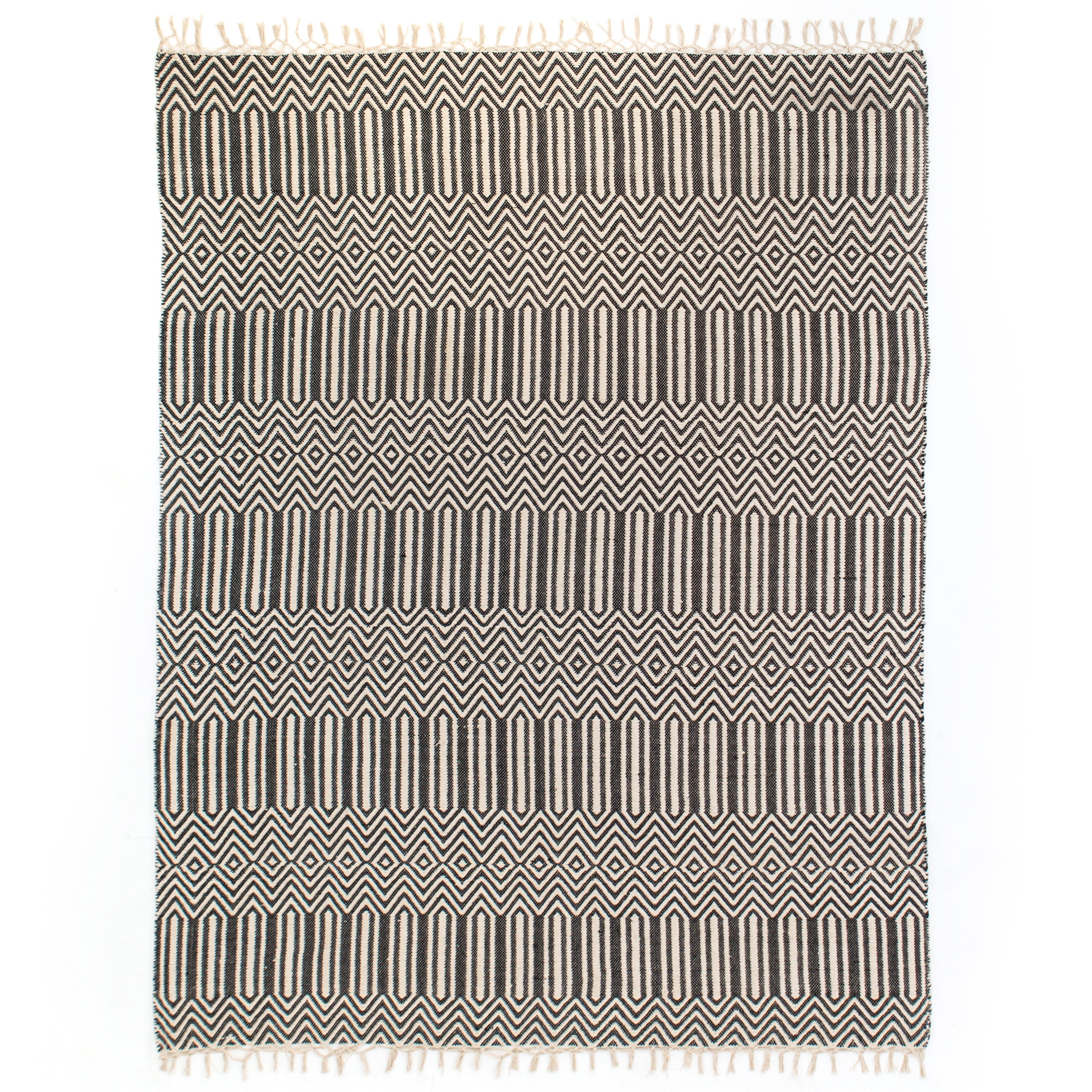 Black Cotton Woven Rug, 5x8'
