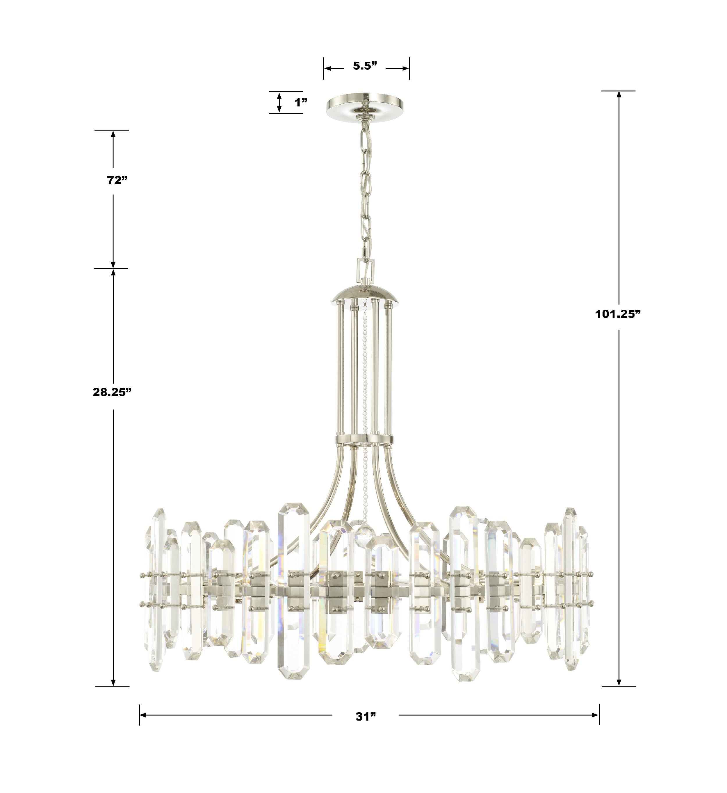 The Bolton Collection exudes glamour and luxury when placed as a focal point in the room. The varying sized faceted cut crystal panels are secured to a floating steel frame. The unique crystal prisms reflect beautiful light that creates an endless sparkle that elegantly blend with many home décor styles.