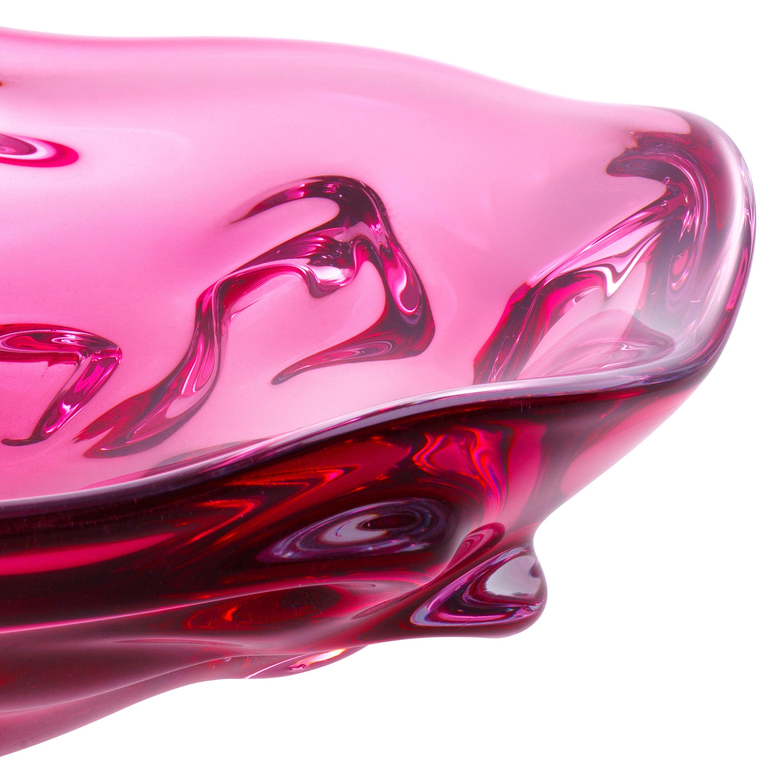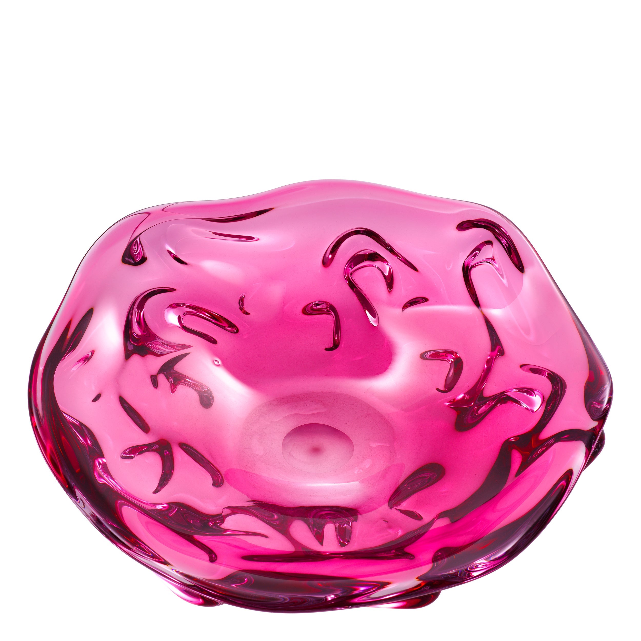 Featuring a free-flowing shape and an intriguing exterior texture, the large Kane Bowl is made of pristine, hand-made pink glass.