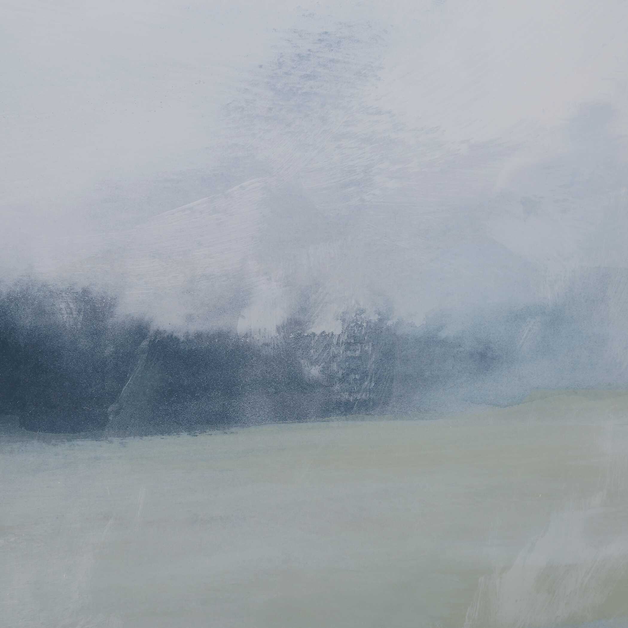 These Tranquil Landscape Prints Are Shown Under Glass Featuring Watercolor Shades Of Navy Blue And Sage. Each Print Is Accented By A White Linen Liner And A Natural Wood Tone Frame. Artwork By June Vess.