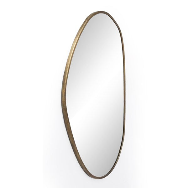 Reminiscent of mid-century Italian styling, antique brass-finished iron curves for a unique, asymmetric look that breaks the mold.