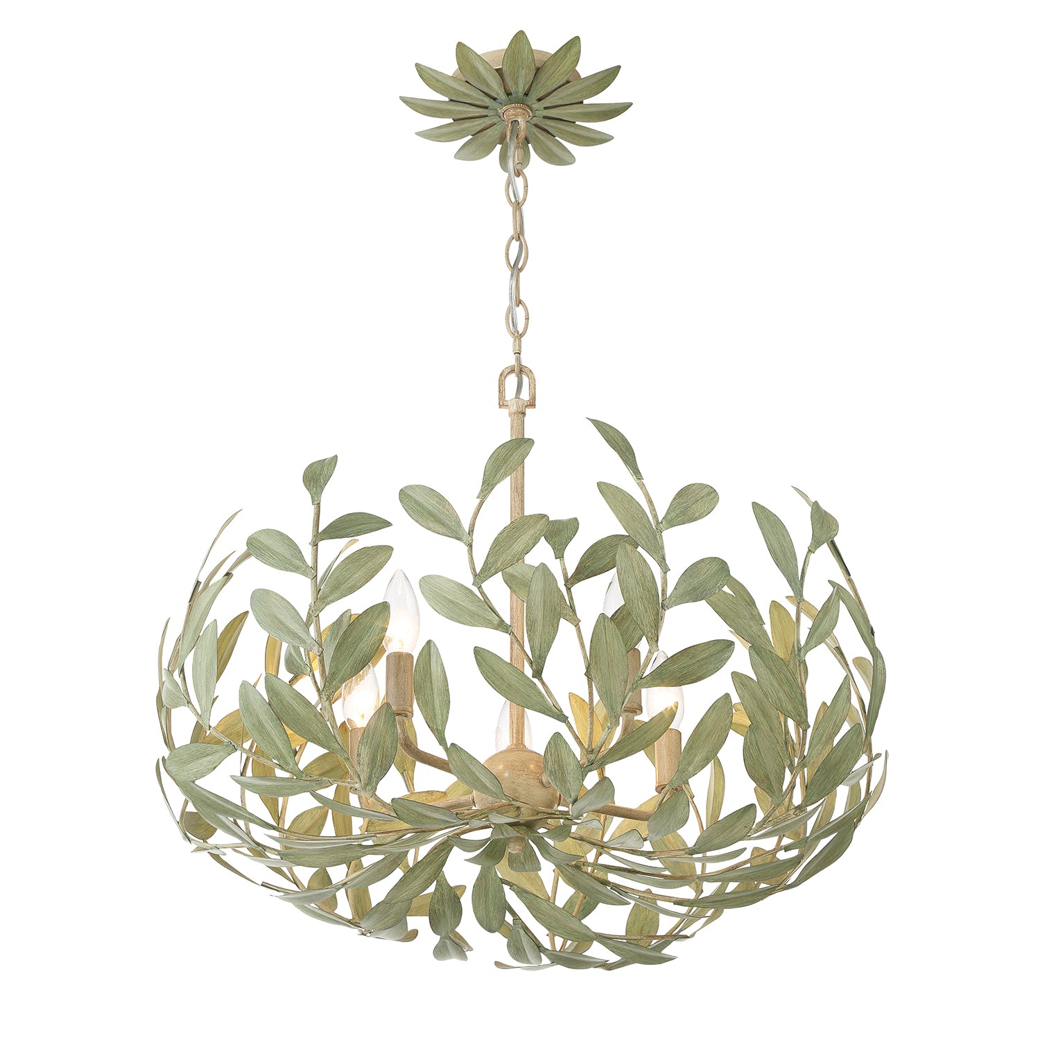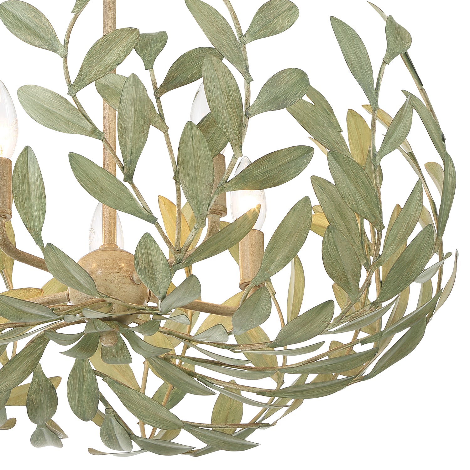 Drawing inspiration from the beauty of nature, this inverted pendant, adorned with upward-sweeping vines, exudes an enchanting allure allowing the Broche Collection to capture the essence of the outdoors. Available in three finishes - silver, white, and gold - this fixture features hand-painted wrought iron leaves delicately wrapped around the frame. The fusion of textures, from the intricate leaves to the organic vines, offers a visual delight with abundant captivating details while casting a warm, inviting glow on the iron.