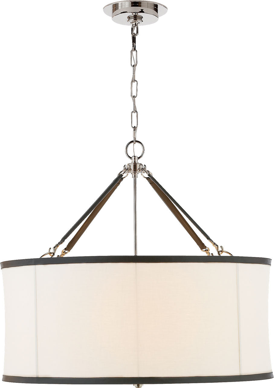 The iconic Broomfield by Ralph Lauren celebrates a refined equestrian aesthetic. Supple leather straps adorn both shade and metalware for visual effect as well as structure. The hanging shade will add sophistication and style to living rooms, bedrooms or studies.