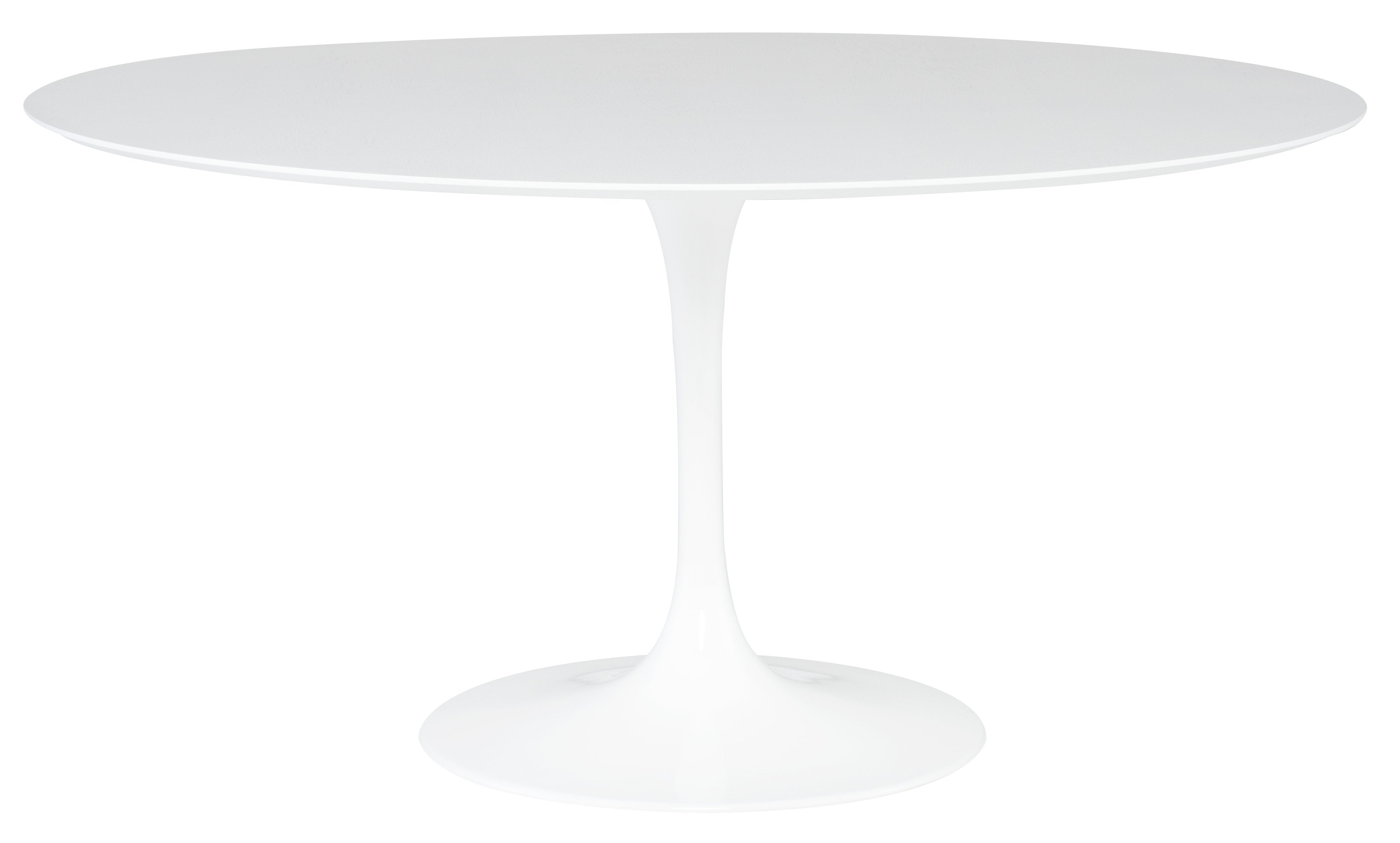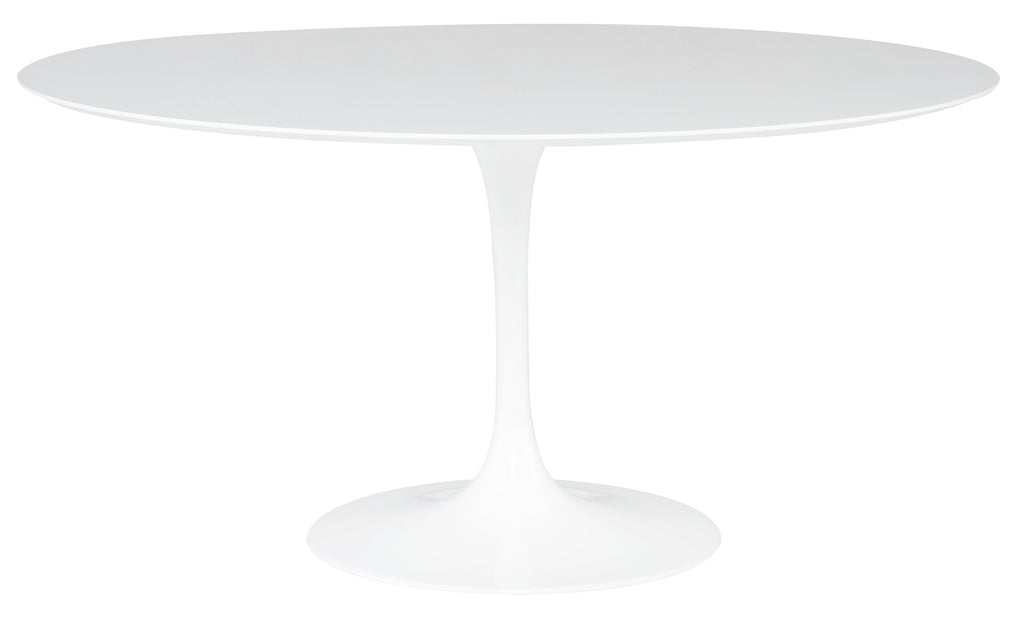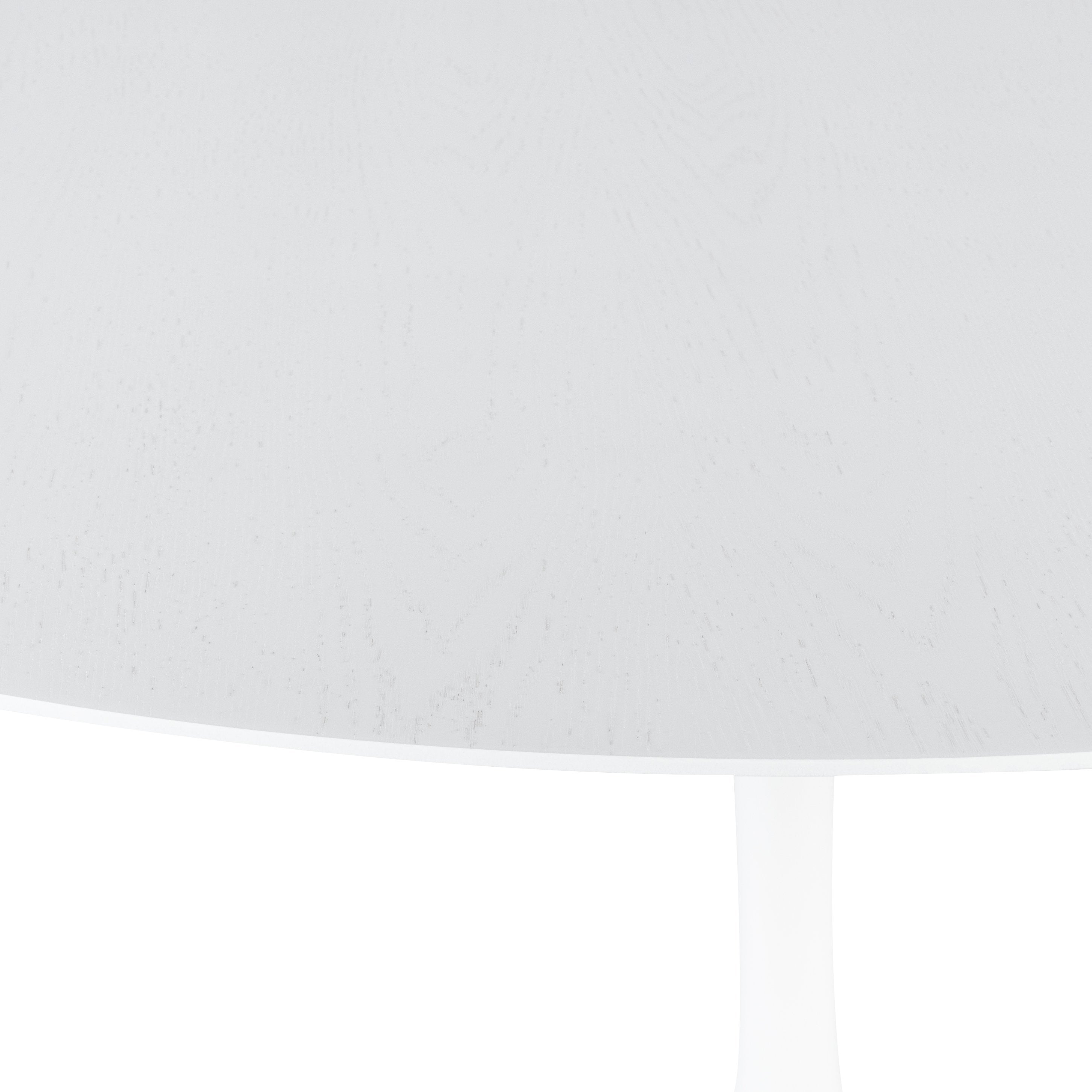 Inspiration for the Cal dining table is rooted in the purity of mid-century design. The circular Cal topped in white veneer conveys a graceful aesthetic.