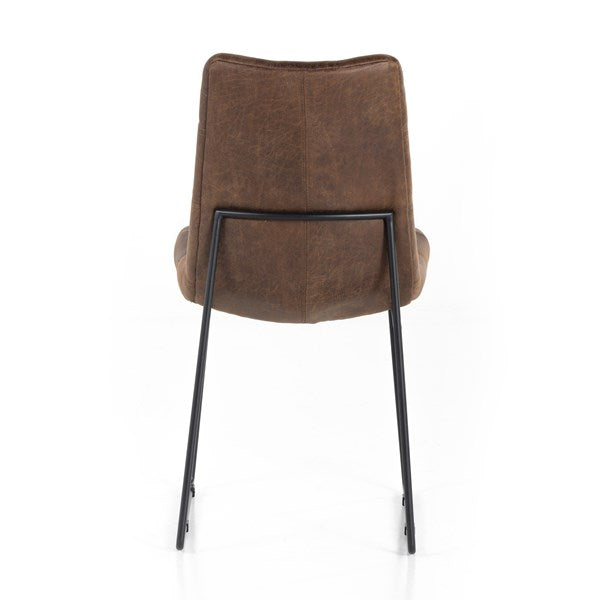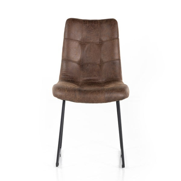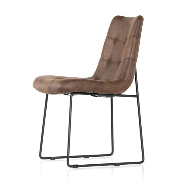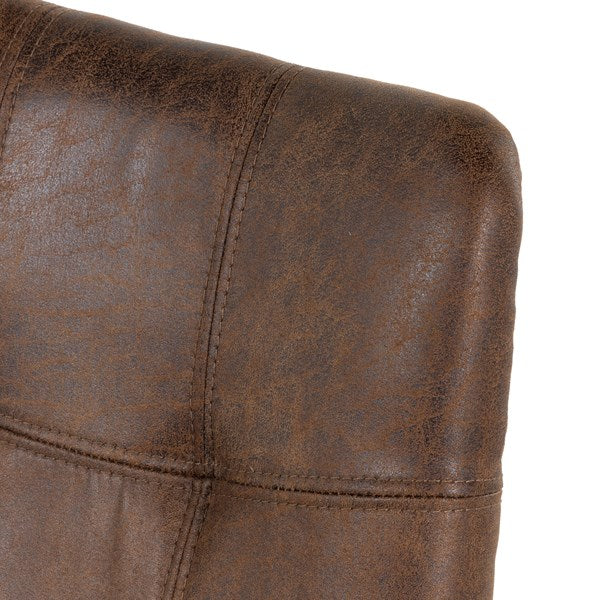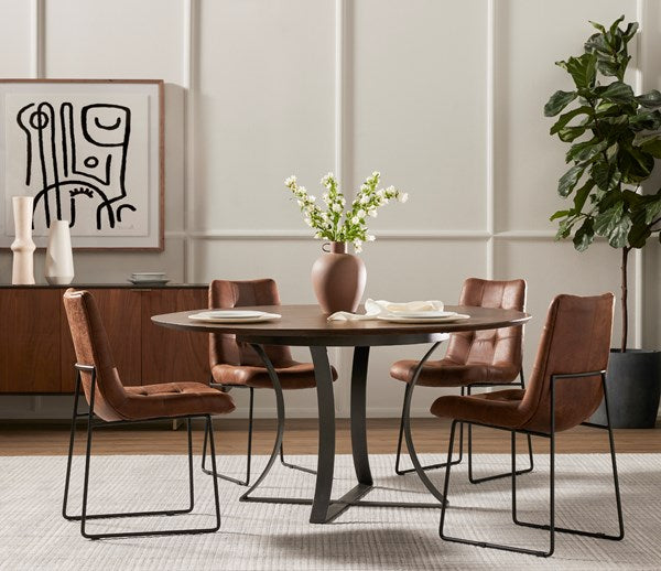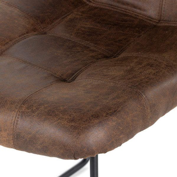 Squared tufting delivers a classic design touch to modern-minimalist style. Slim iron legs curve to support faux leather seating in a vintage tobacco, perfect for everyday dining.