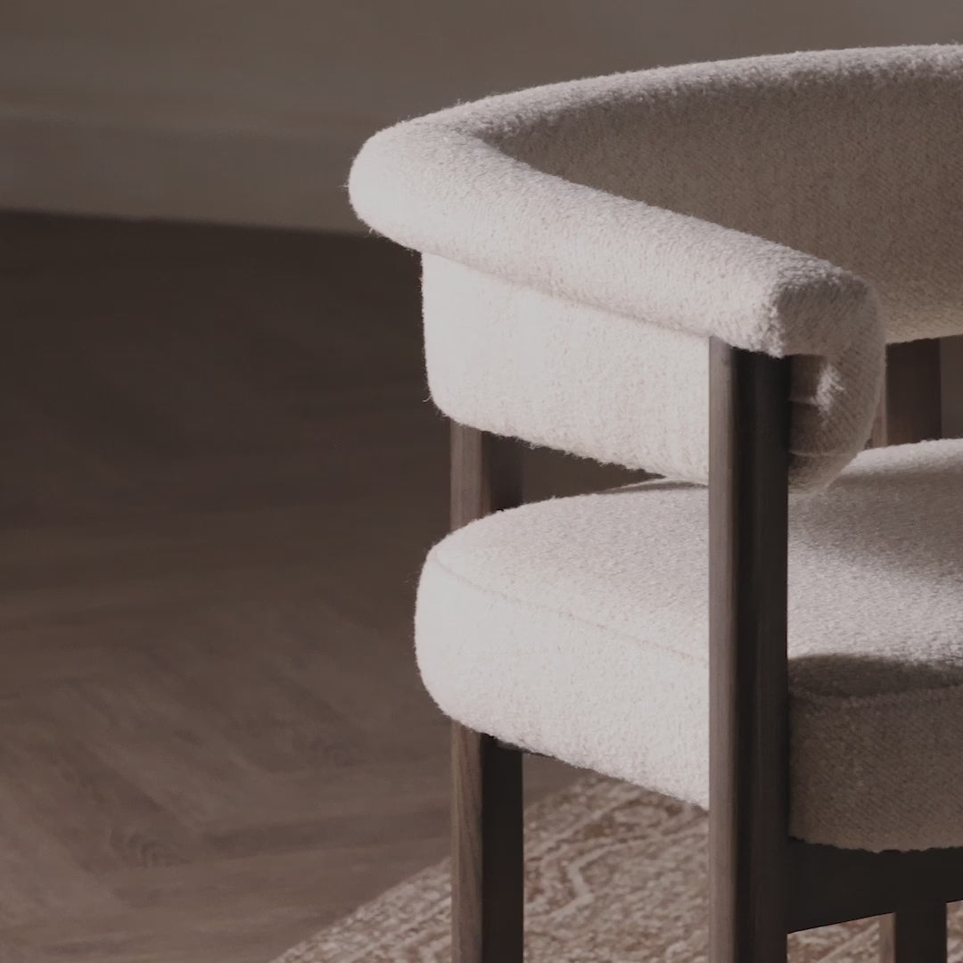 Upholstered in high-performance fabric, this sculpted dining style features a comfortable yoke back and exterior fold detailing, all framed by solid ash. Performance fabrics are specially created to withstand spills, stains, high traffic and wear, ensuring long-term comfort and unmatched durability.